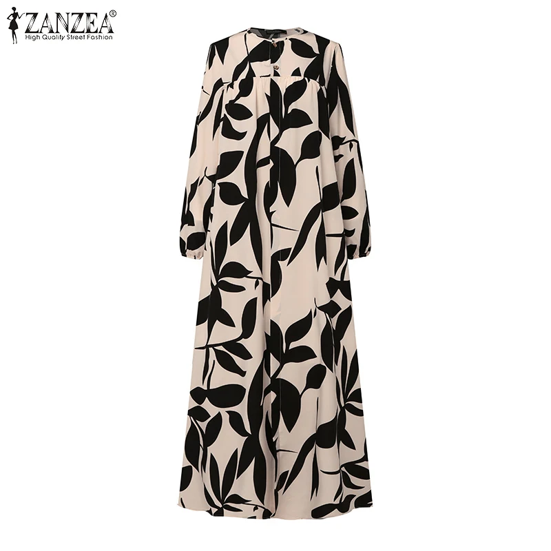 2025 ZANZEA Autumn Sundress Fashion Women Long Sleeve Dress Abaya Bohemain Floral Print Maxi