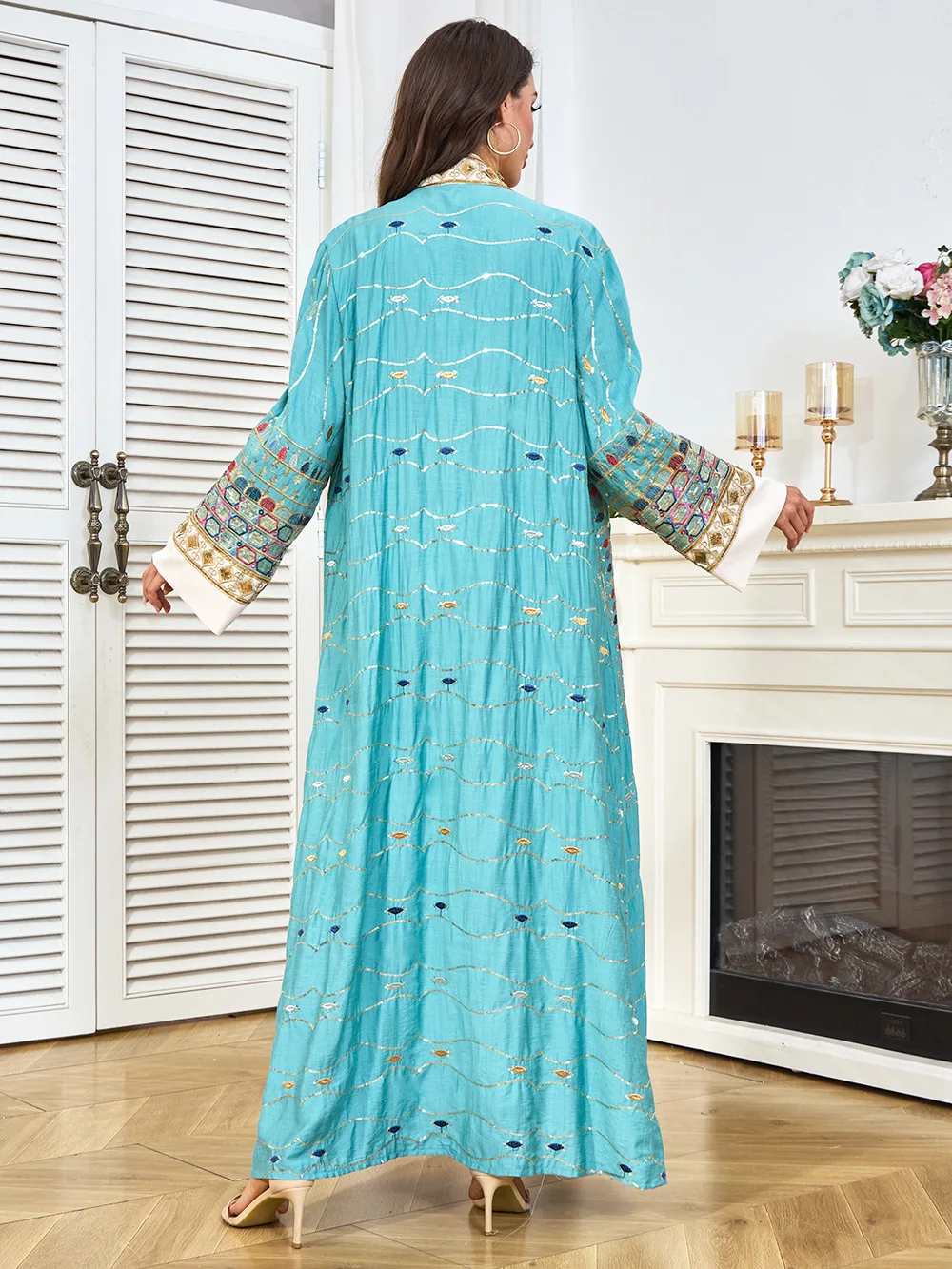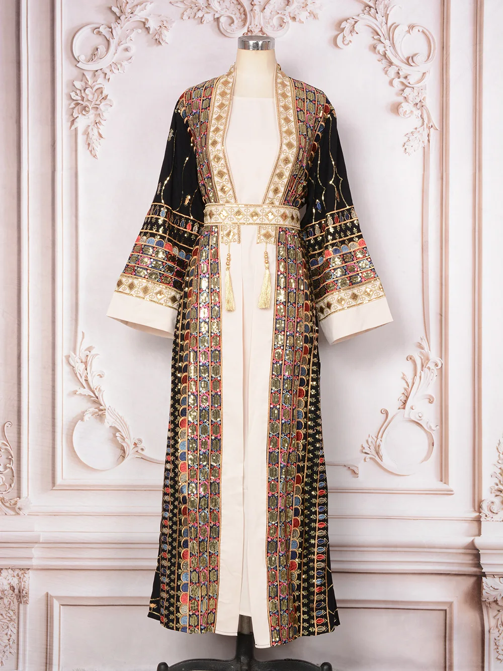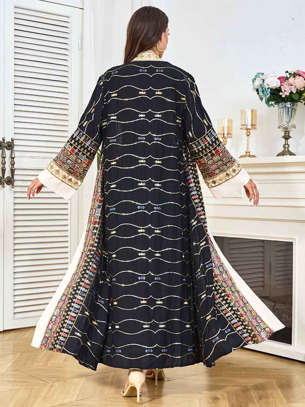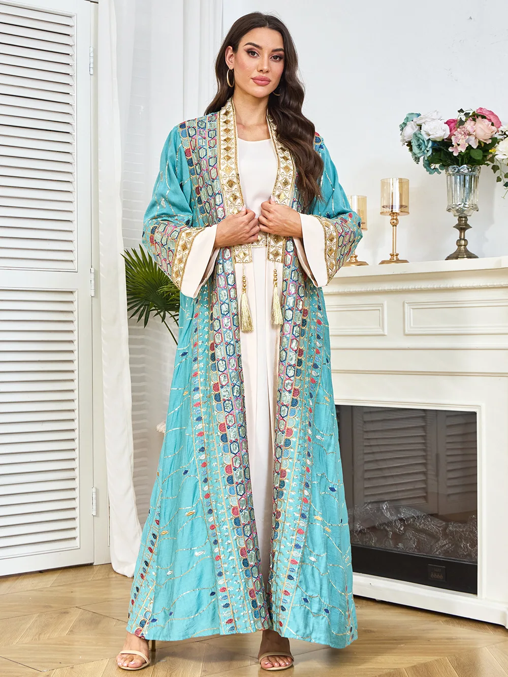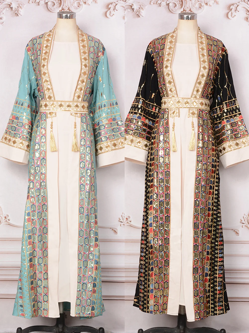 2025 Dubai Luxury Sequin Embroidered Dress  Women Open Abayas Maxi Dress Robe Set
