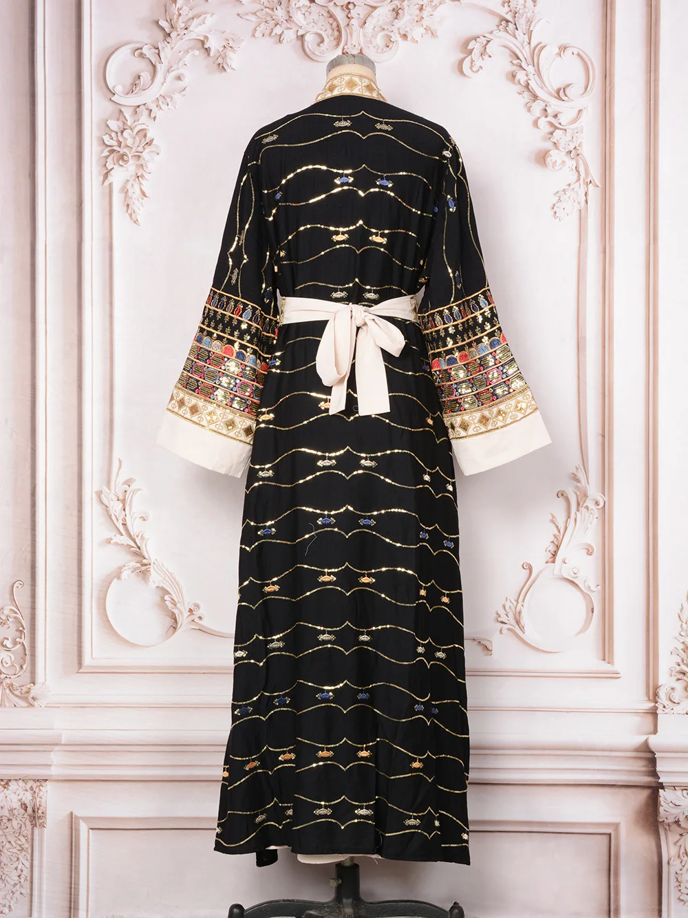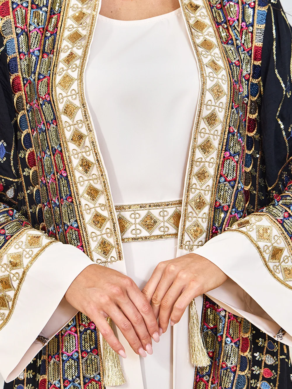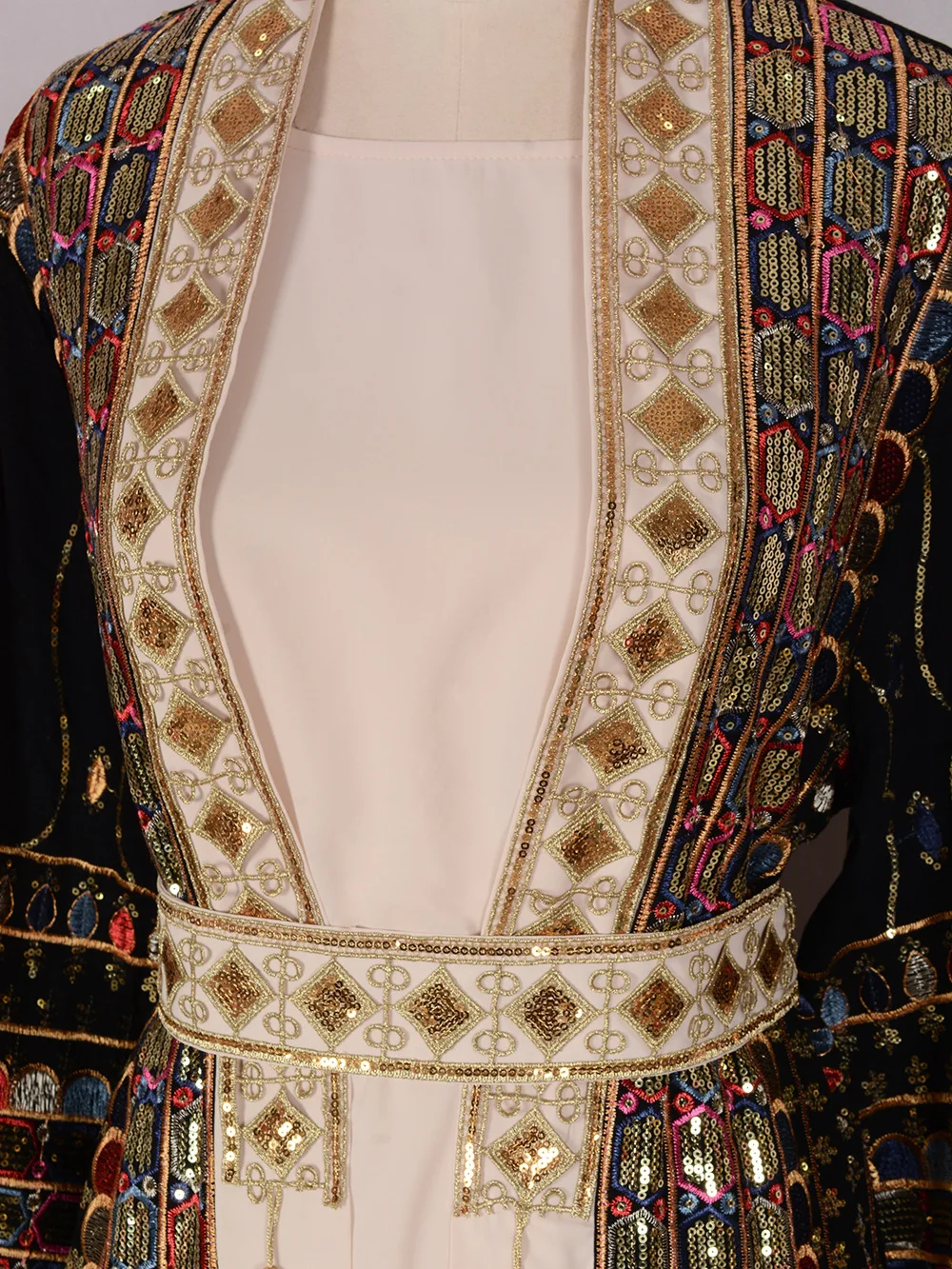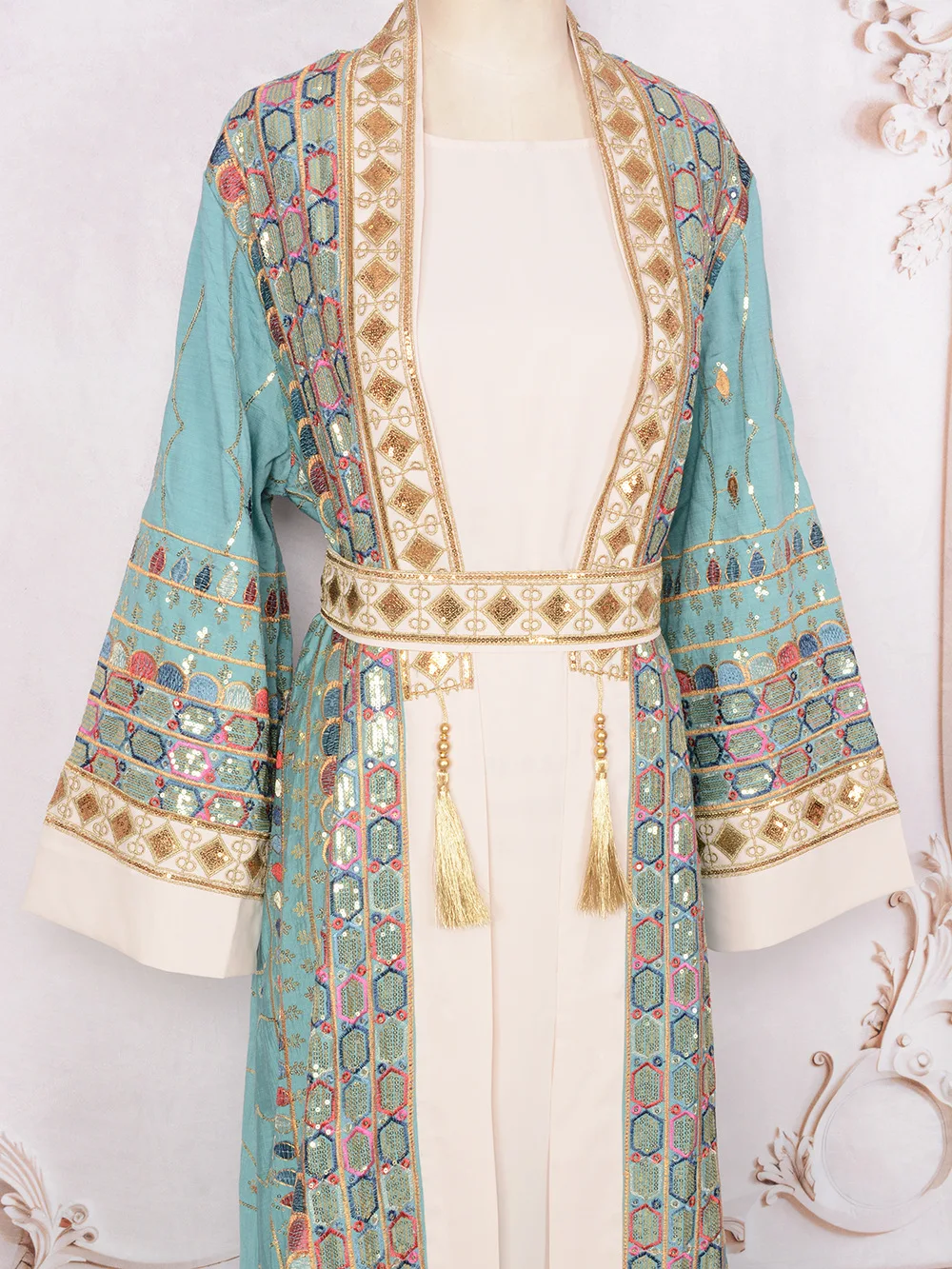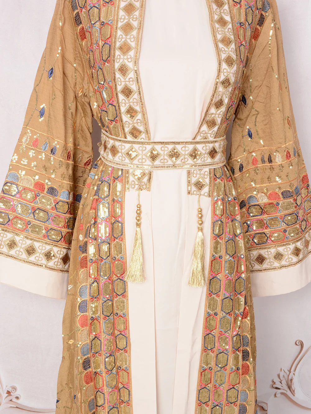 2025 Dubai Luxury Sequin Embroidered Dress  Women Open Abayas Maxi Dress Robe Set