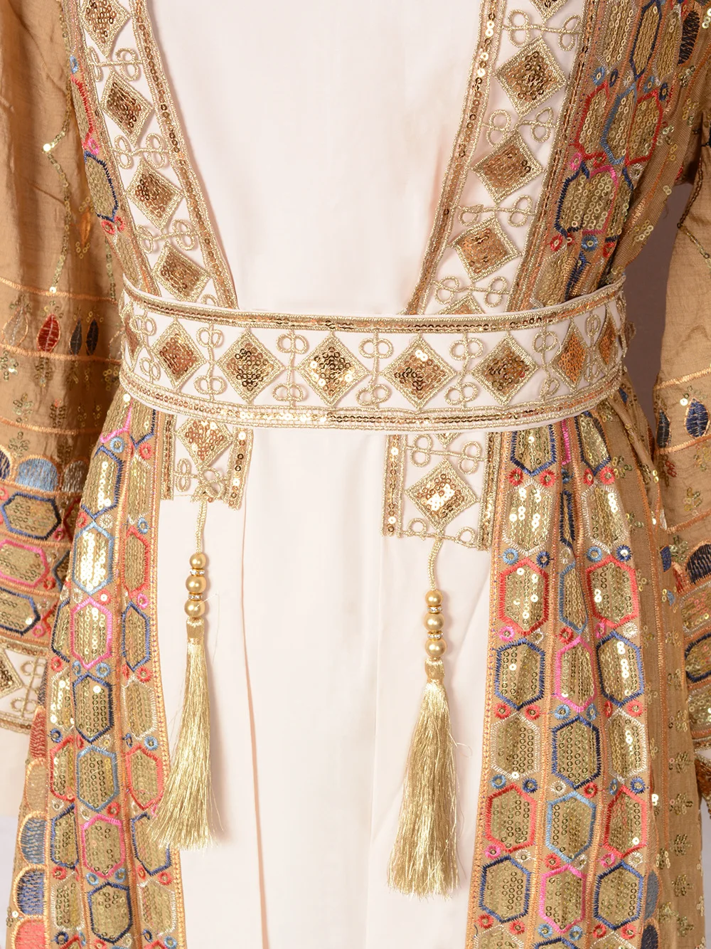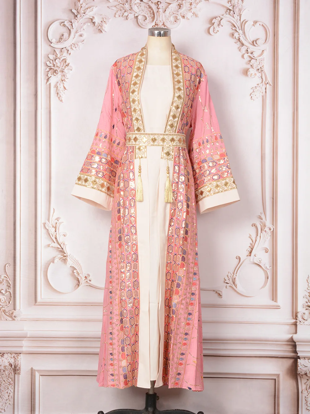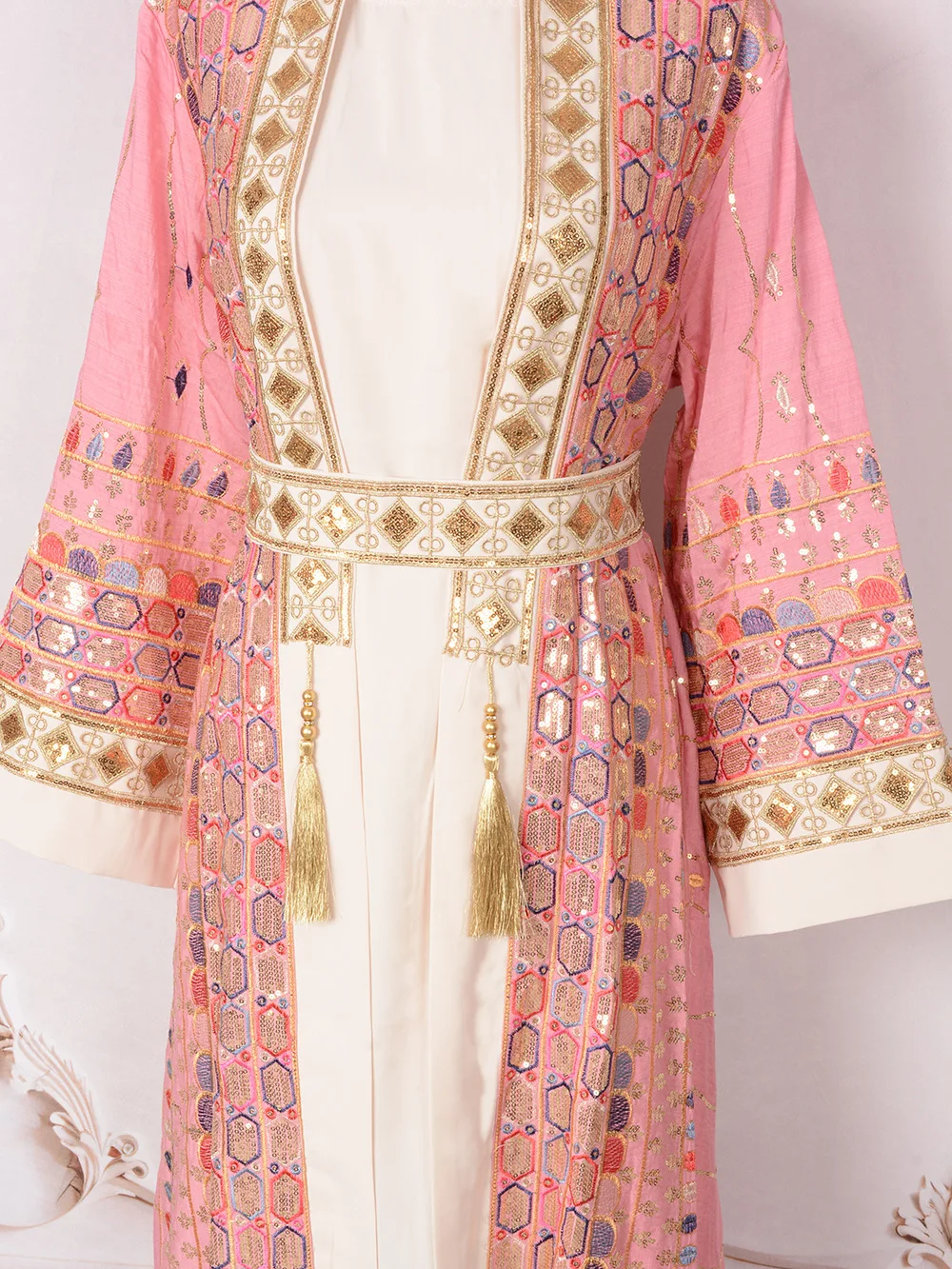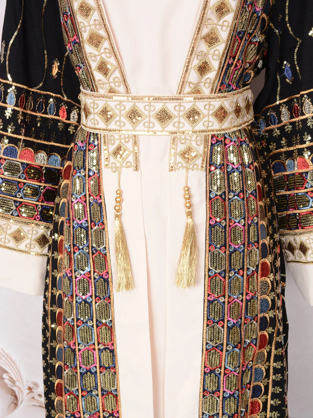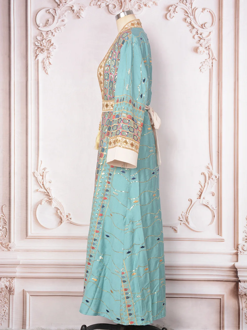 2025 Dubai Luxury Sequin Embroidered Dress  Women Open Abayas Maxi Dress Robe Set