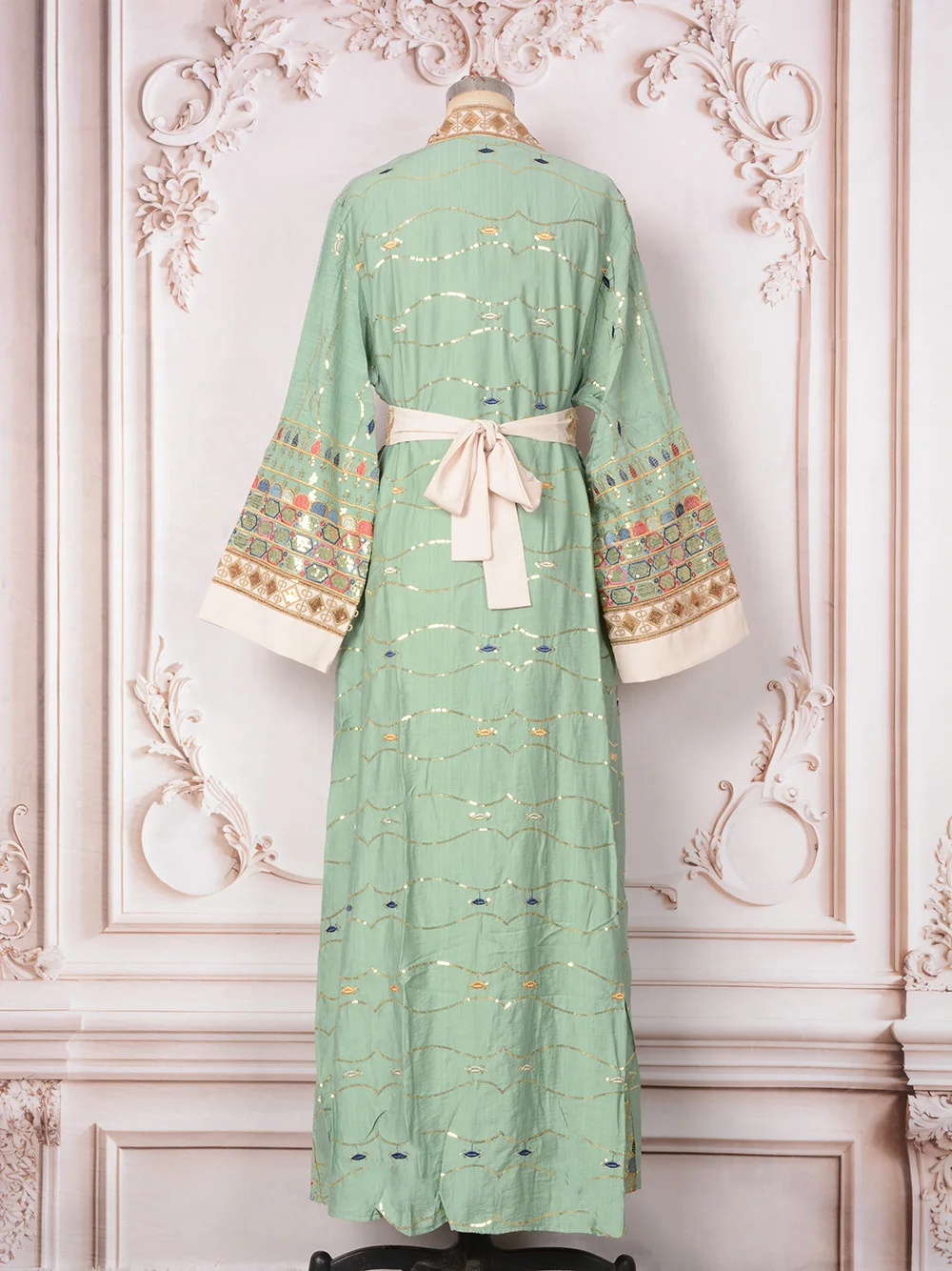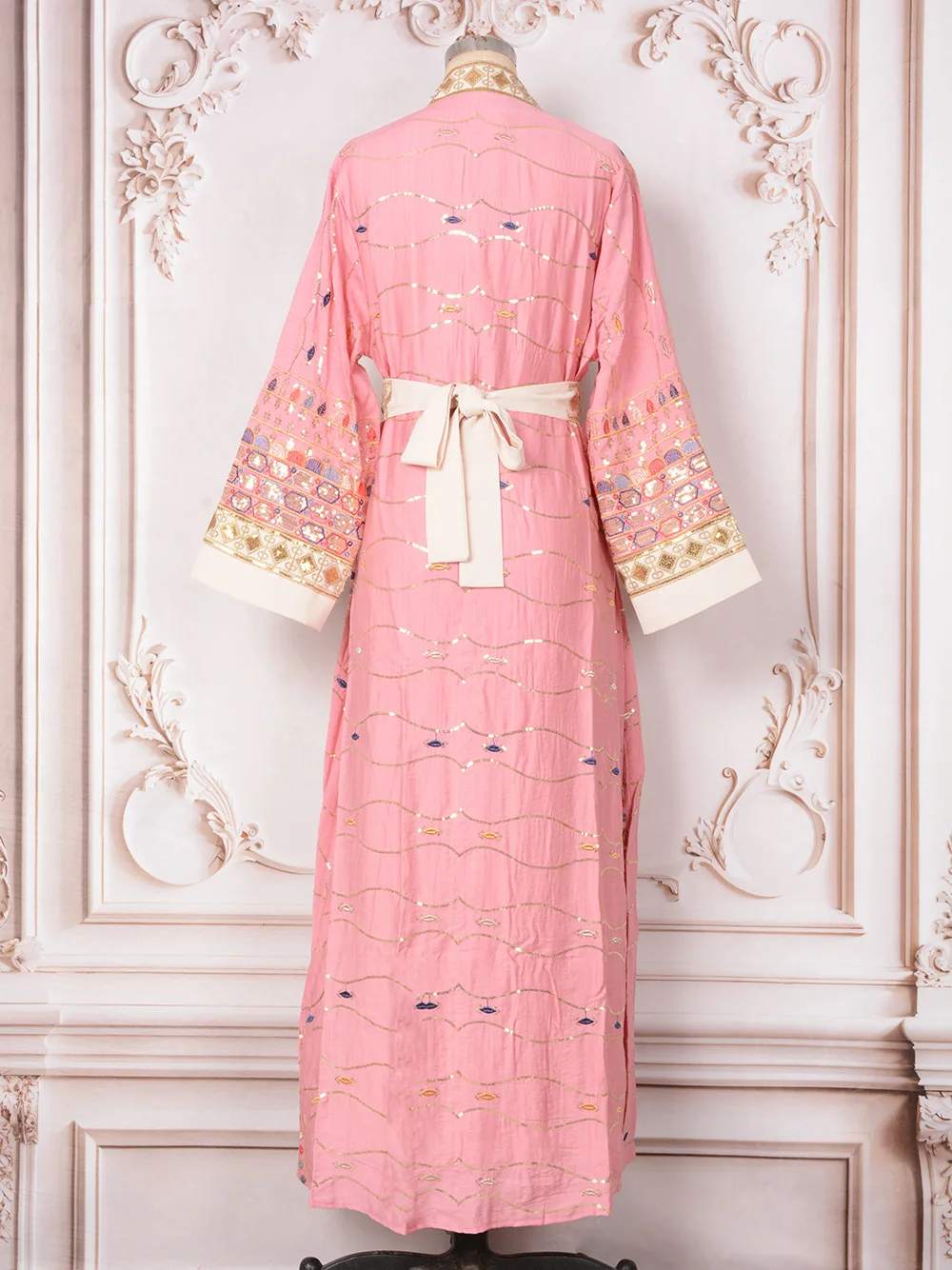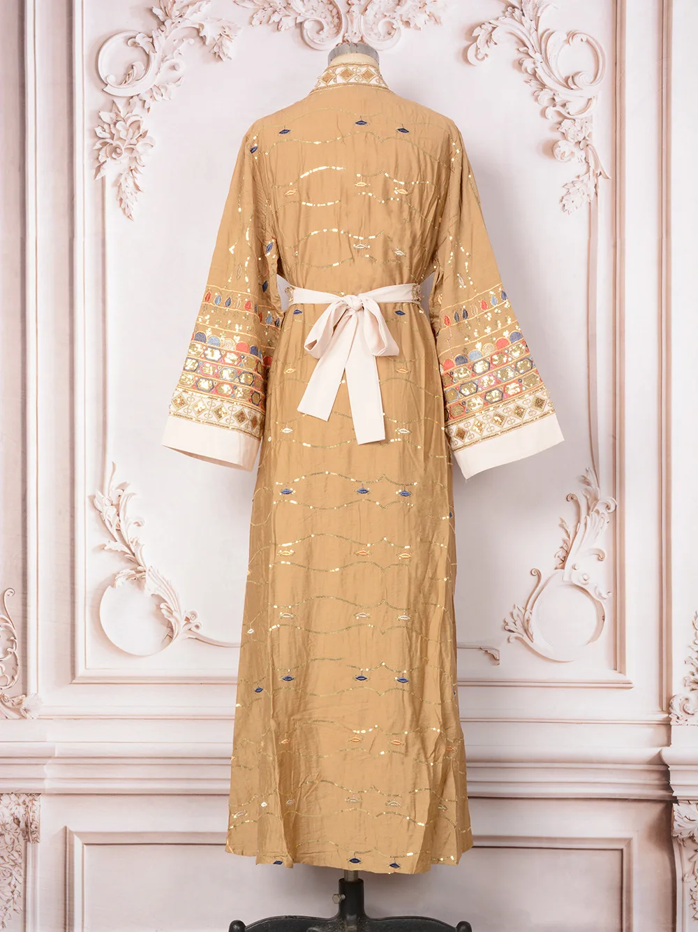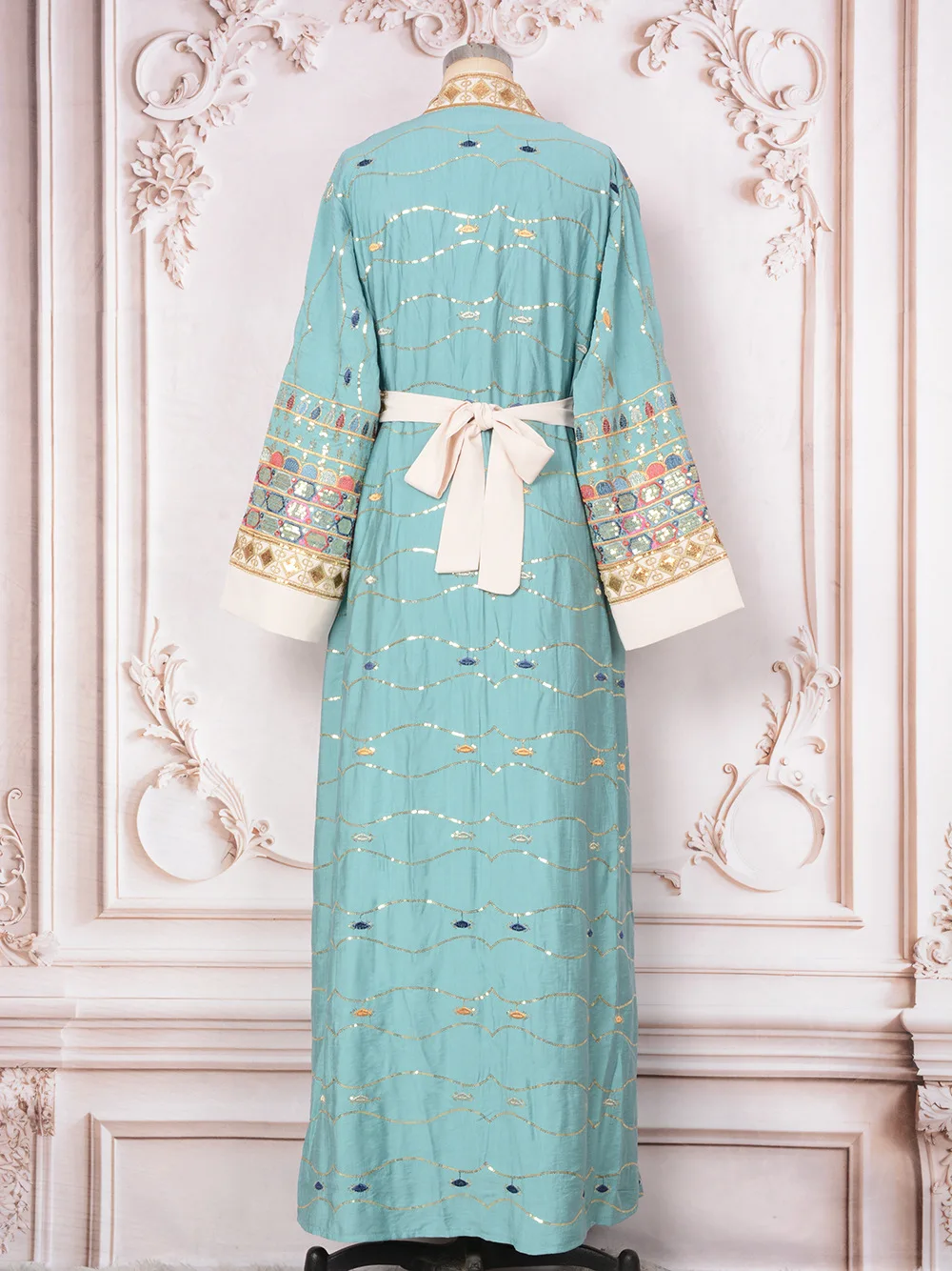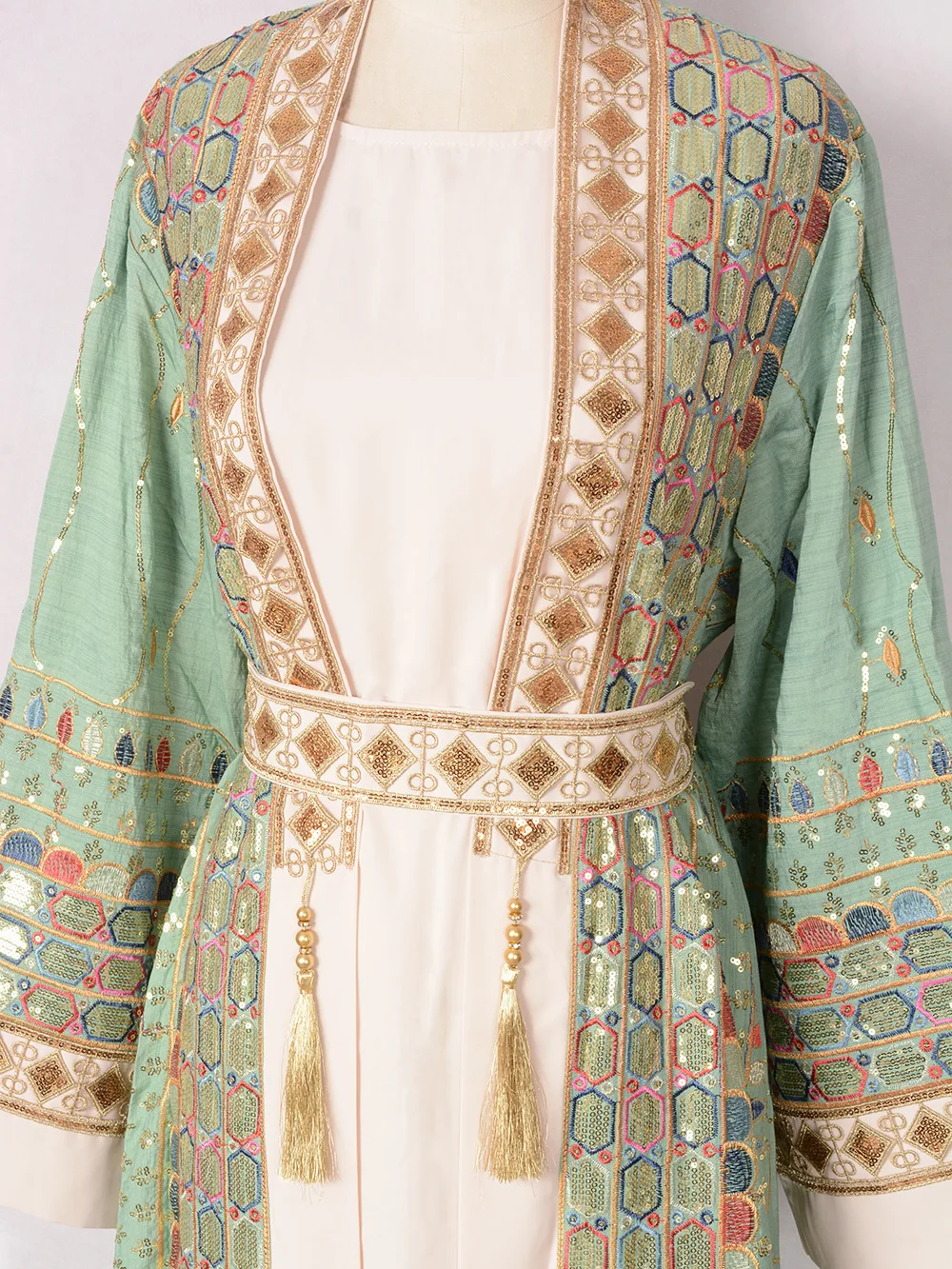 2025 Dubai Luxury Sequin Embroidered Dress  Women Open Abayas Maxi Dress Robe Set