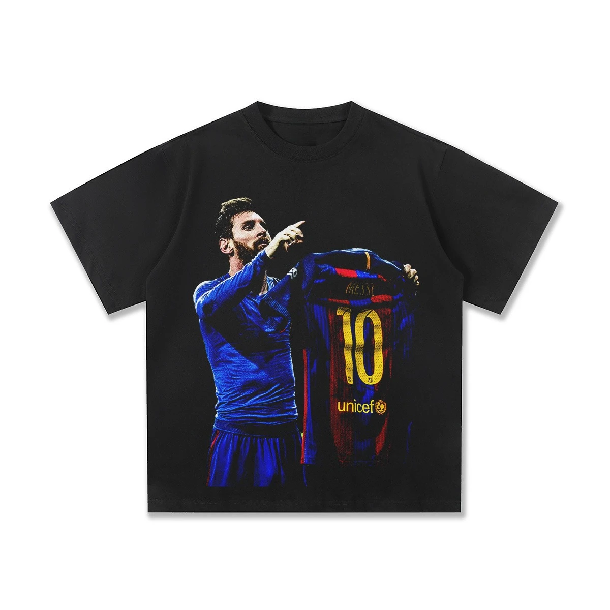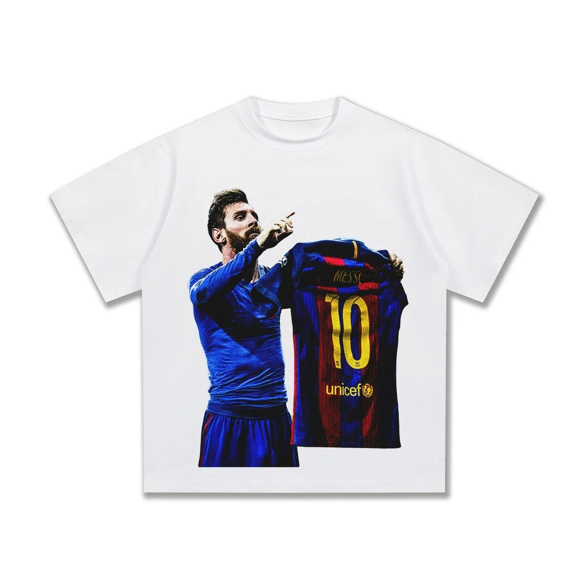 2025 Lionel Messi Barcelona American Football Vintage Print Loose Fashion Brand Personality Cotton Short Sleeve T-shirt