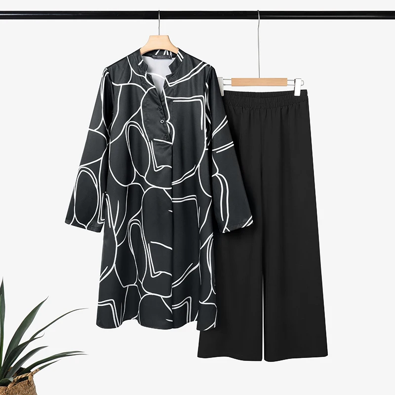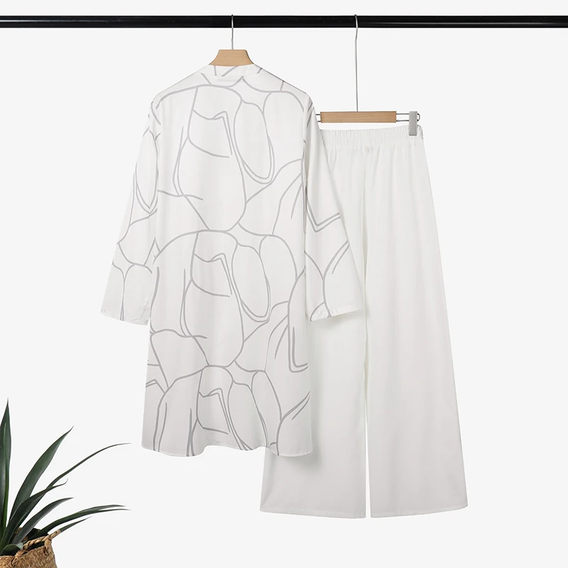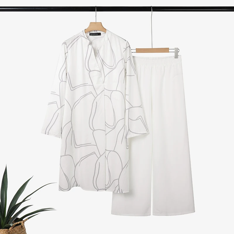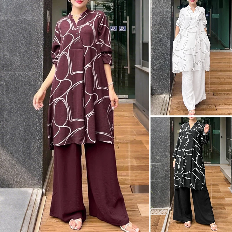 2025 ZANZEA Autumn Printed Tracksuits Women Outfits 2 Piece Sets Long Sleeve Blouse Wide Leg Pant Suit Long Shirt Loose Trousers