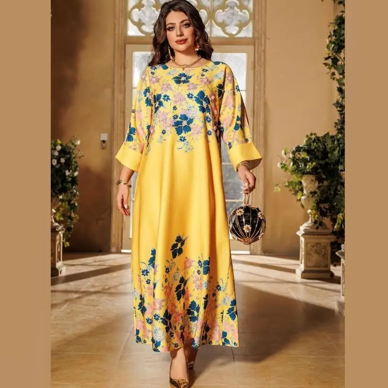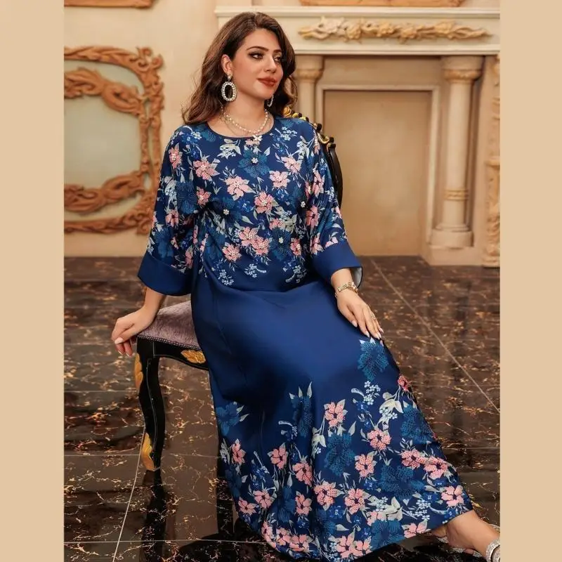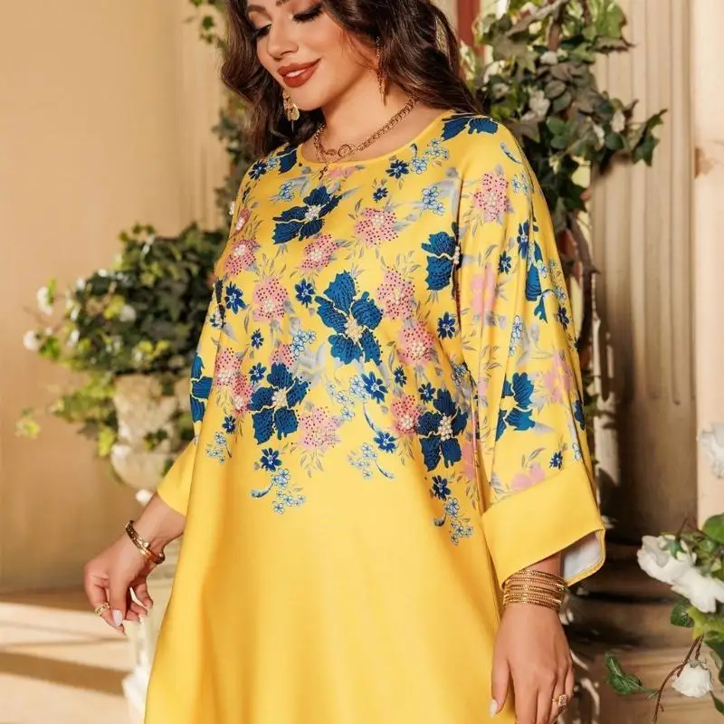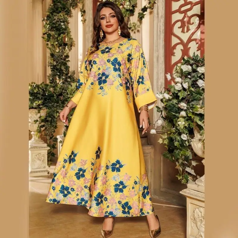 Women Kaftan Dress Flower Print Islamic Kaftan Dress Middle Eastern Robe Dress