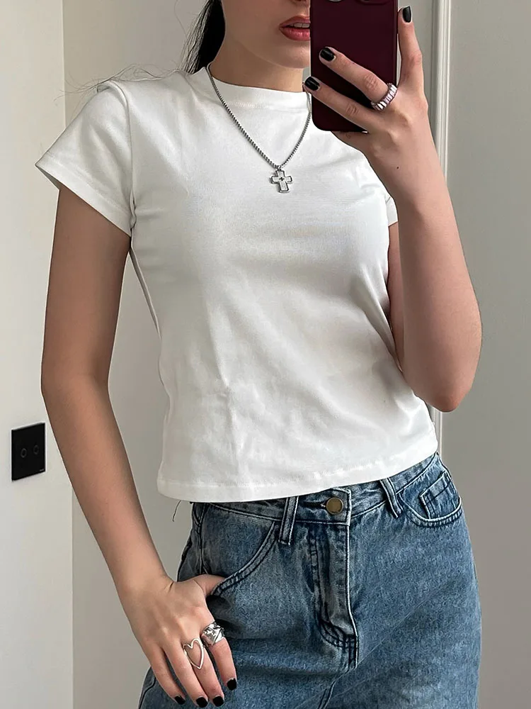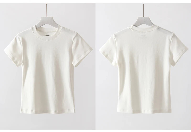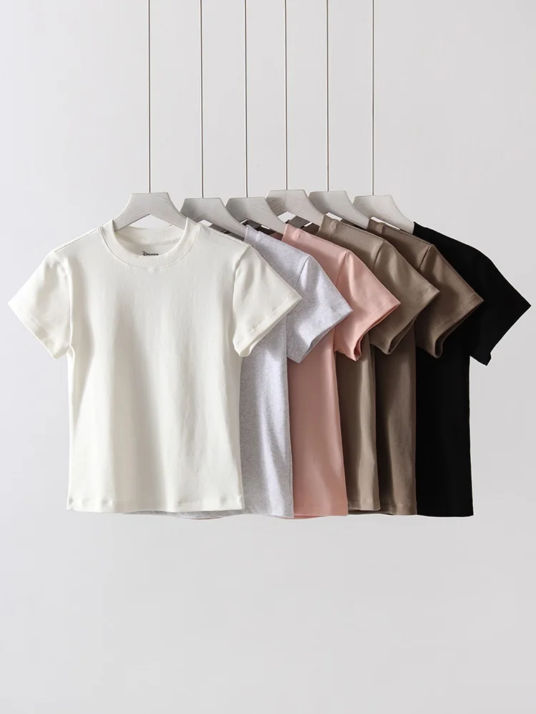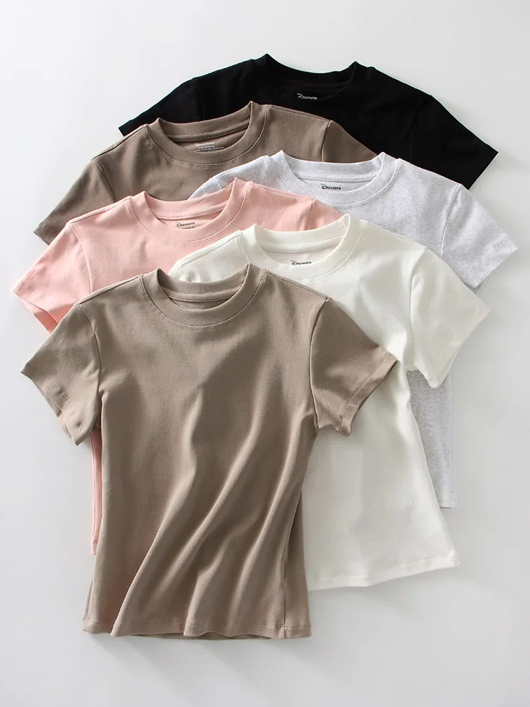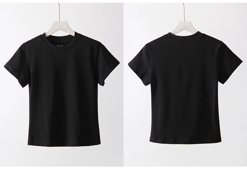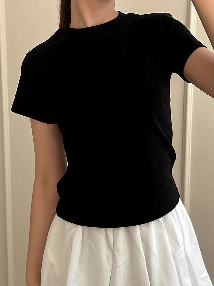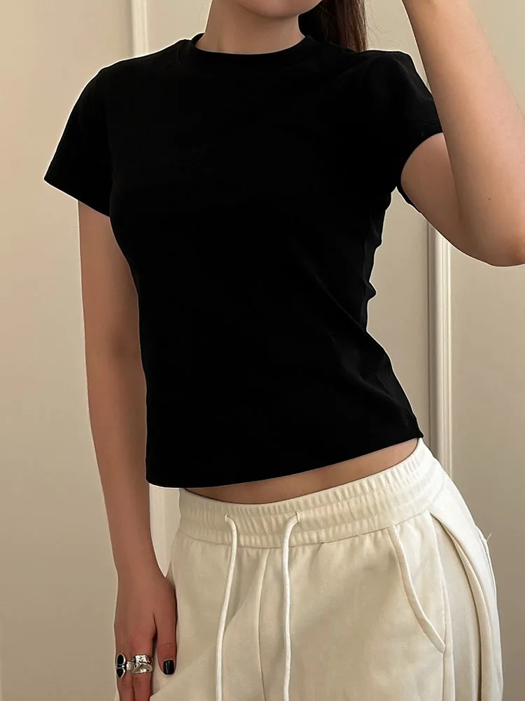 Exquisite Short T Shirts For Women Summer O Neck Slim Cotton Top Tees Streetwear Short Sleeve White Elastic Women's T-shirt Black