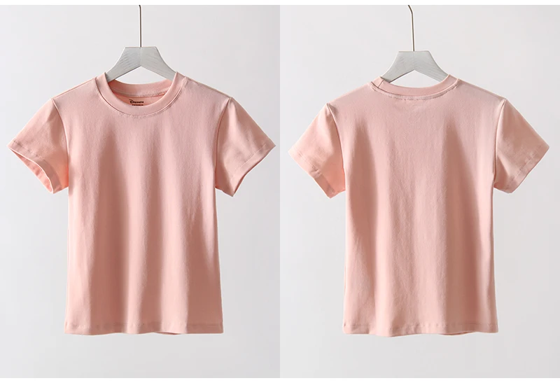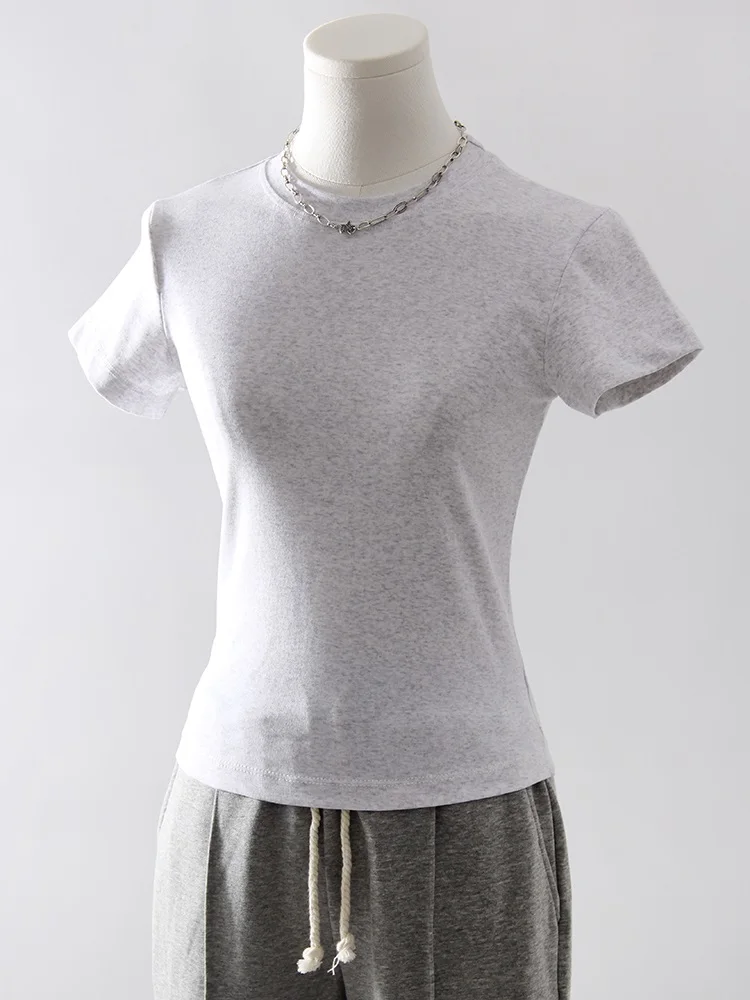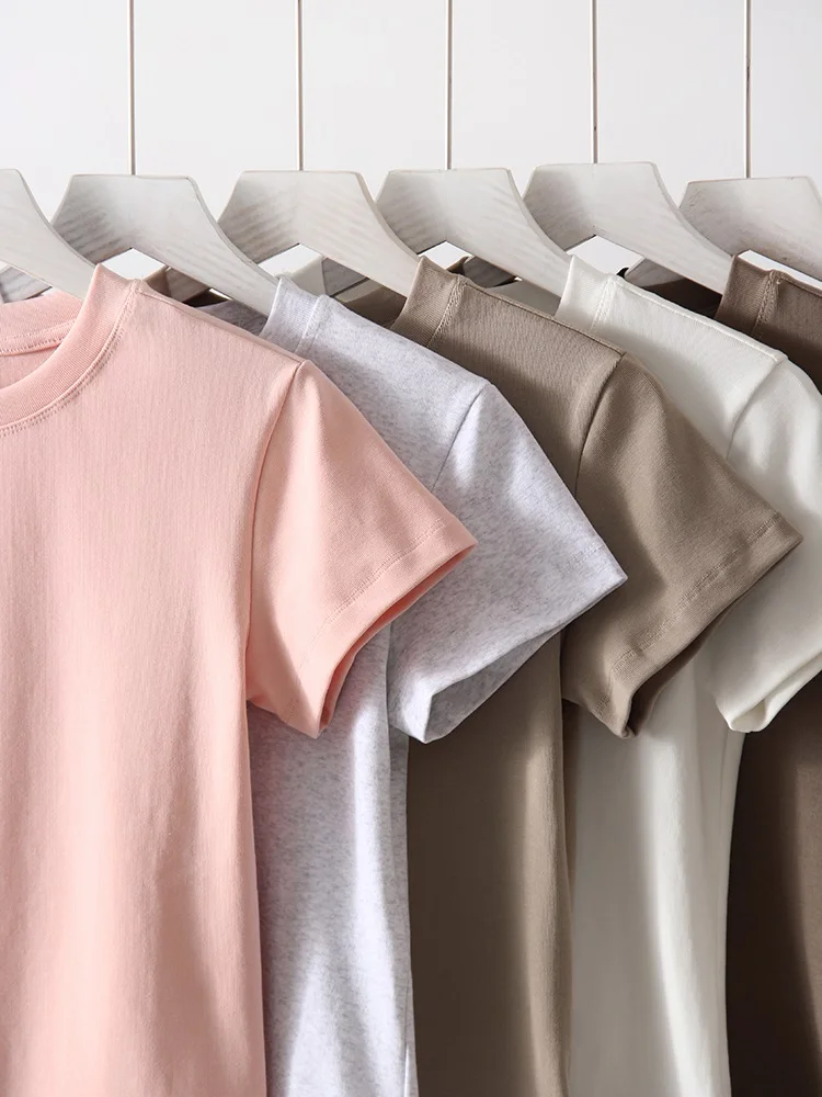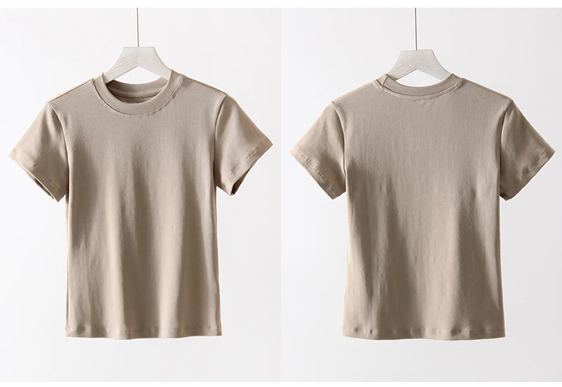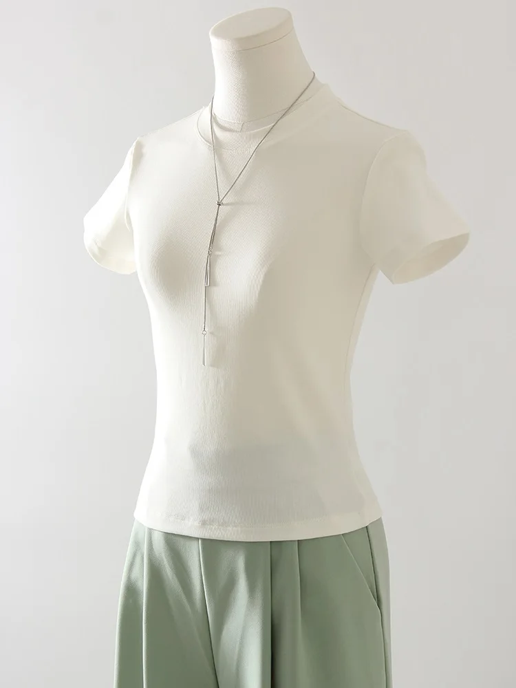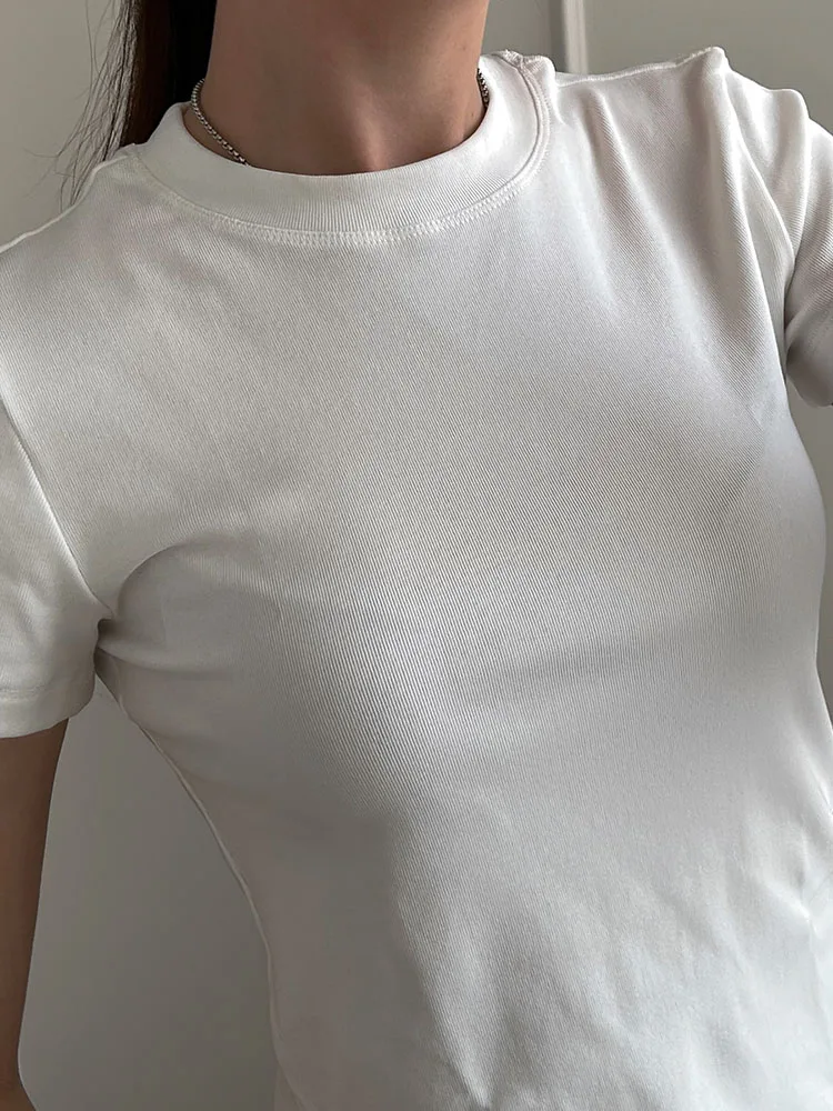 Exquisite Short T Shirts For Women Summer O Neck Slim Cotton Top Tees Streetwear Short Sleeve White Elastic Women's T-shirt Black