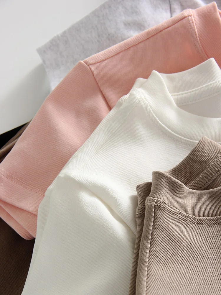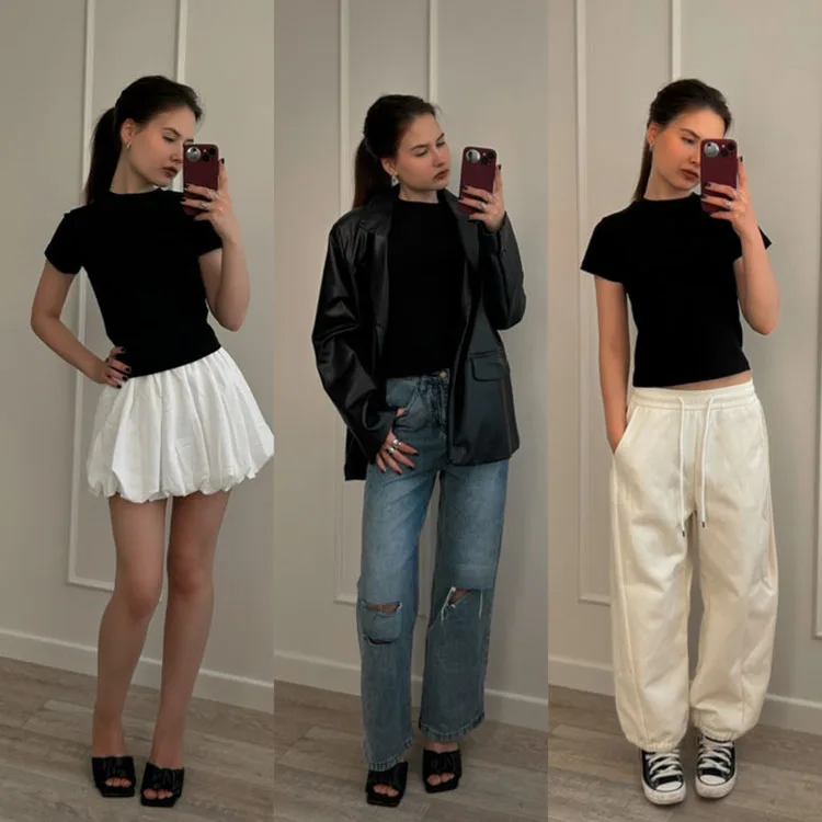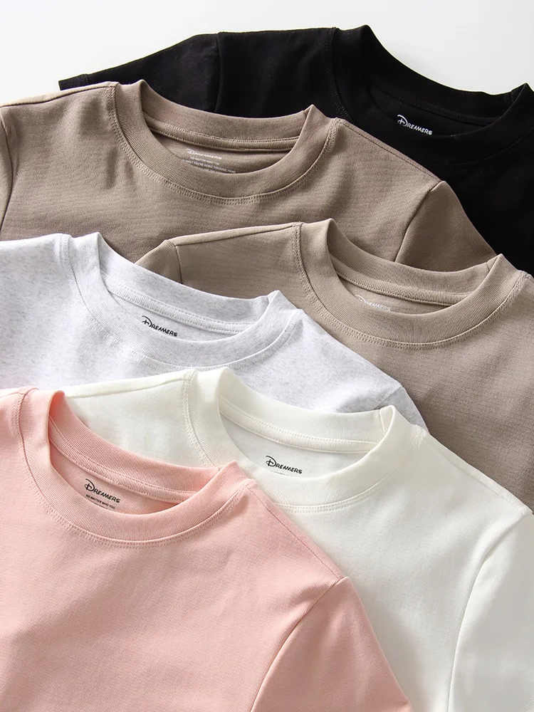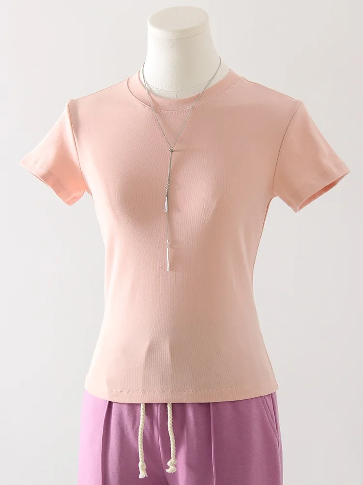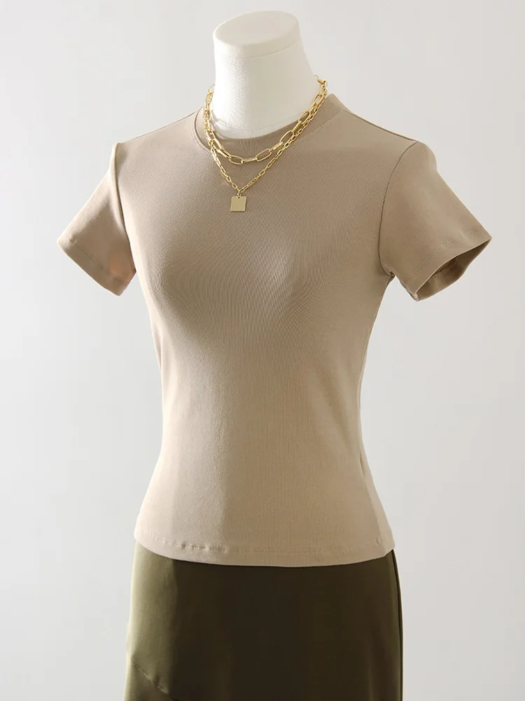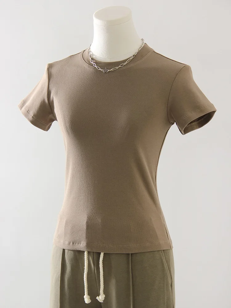 Exquisite Short T Shirts For Women Summer O Neck Slim Cotton Top Tees Streetwear Short Sleeve White Elastic Women's T-shirt Black