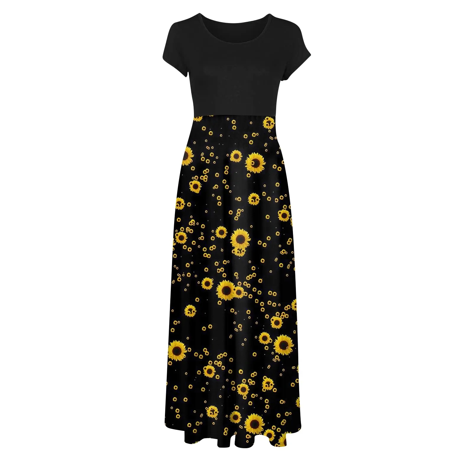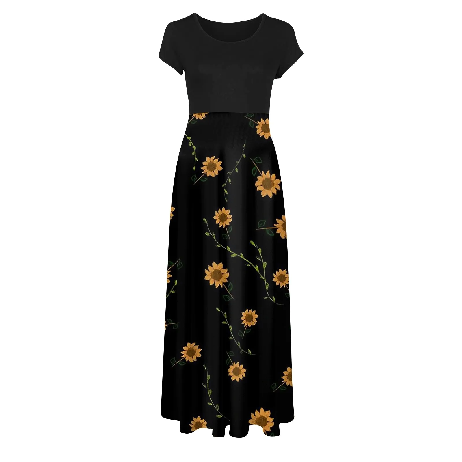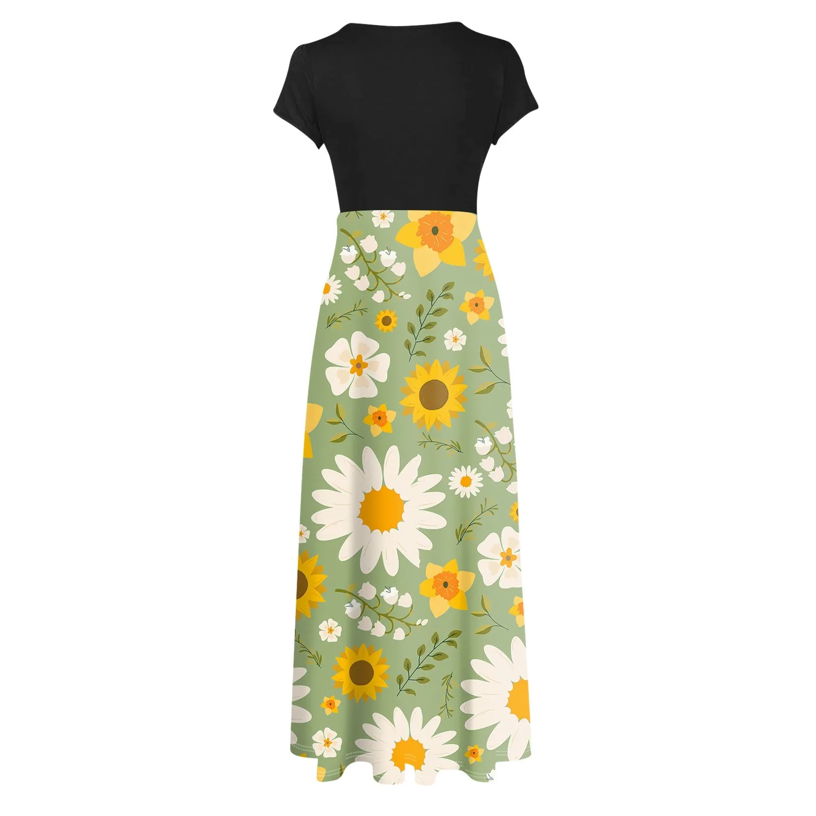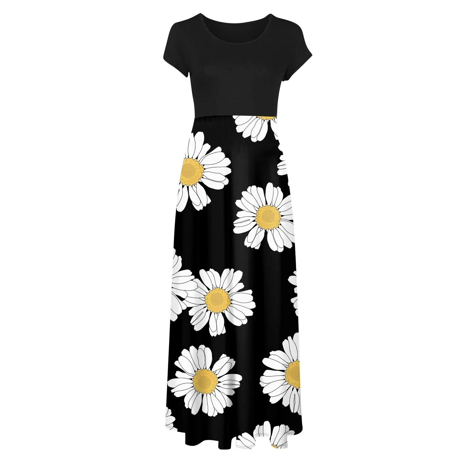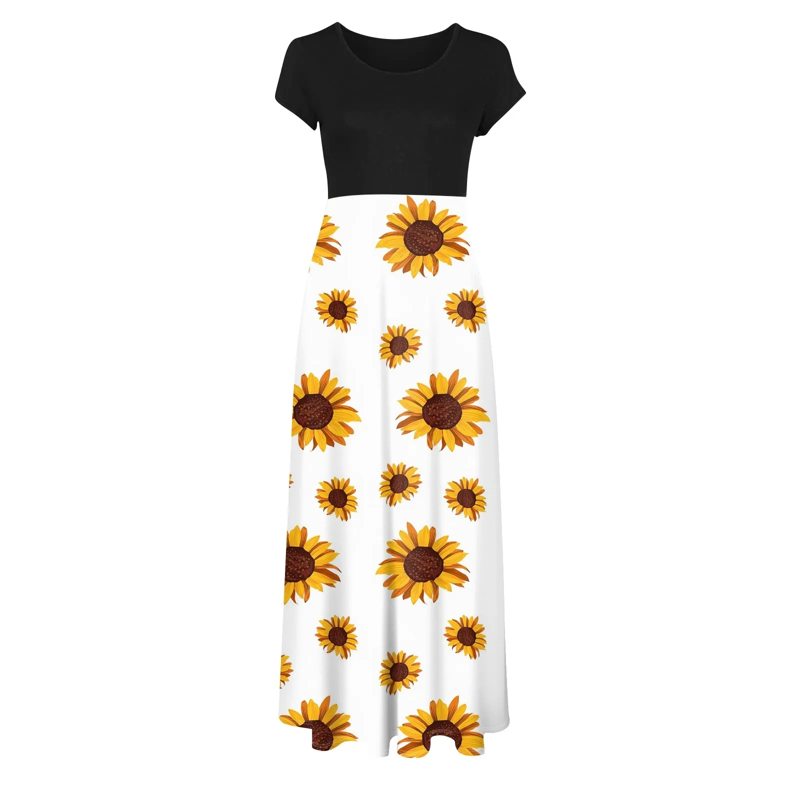elegant dresses for women Fashion Casual long dresses Print O-Neck Short Sleeves Oversized Maxi Dress Splicing vestidos curtos