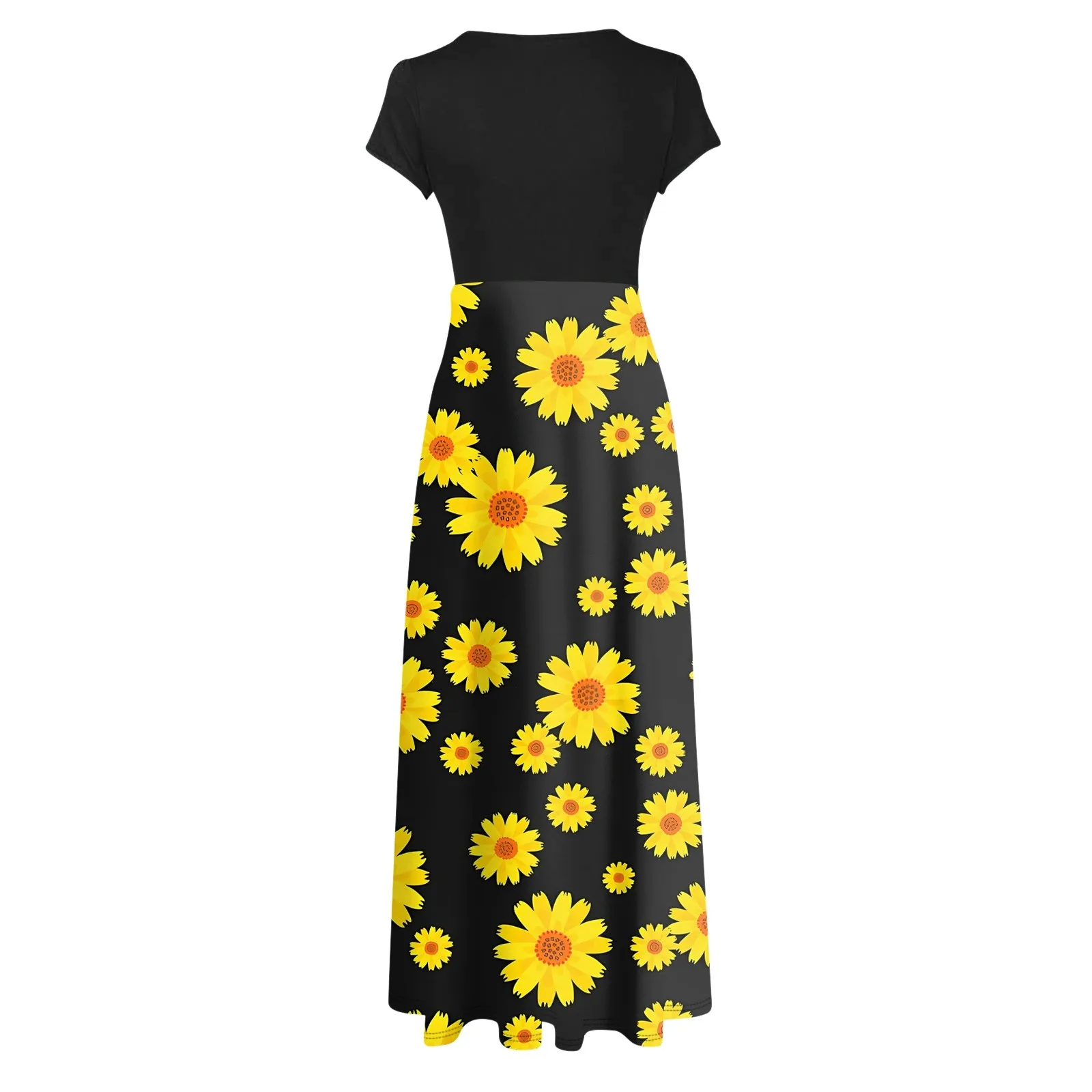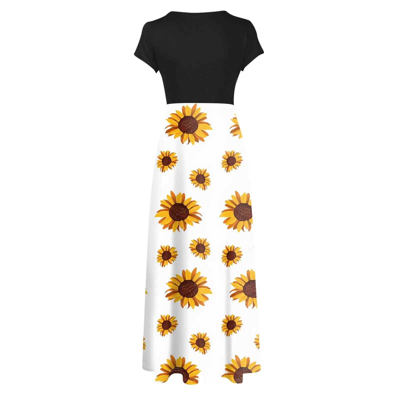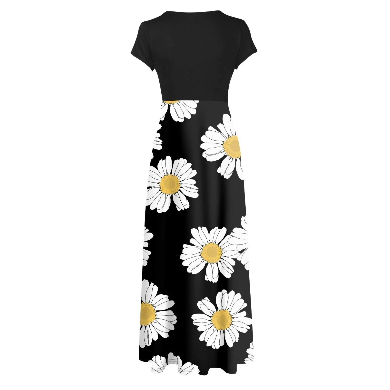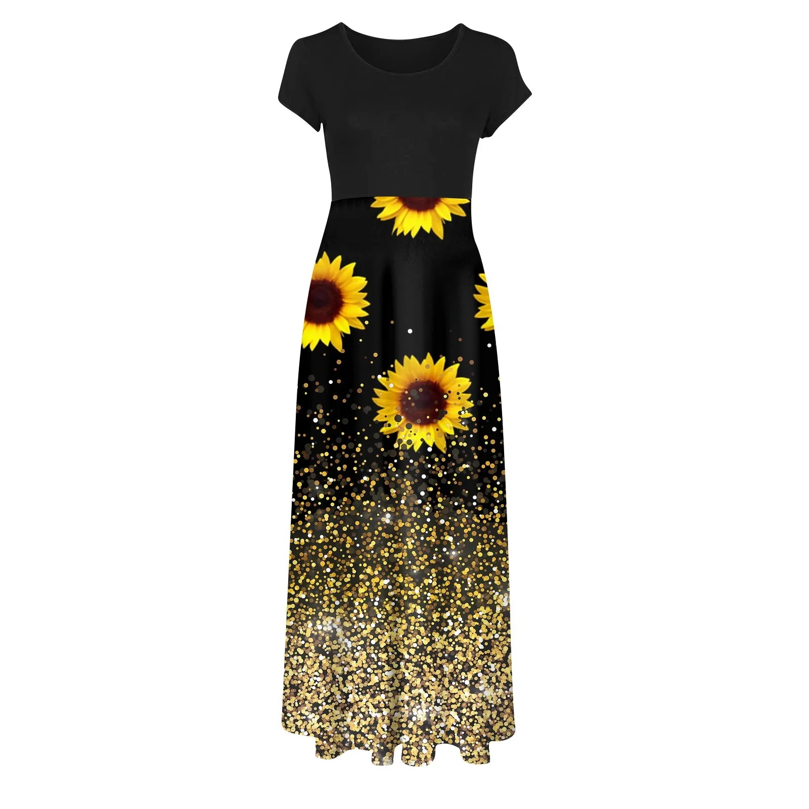 elegant dresses for women Fashion Casual long dresses Print O-Neck Short Sleeves Oversized Maxi Dress Splicing vestidos curtos