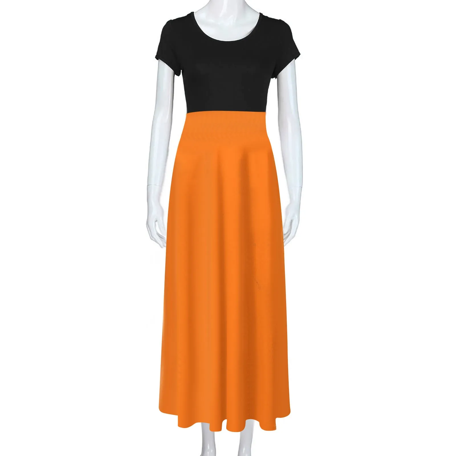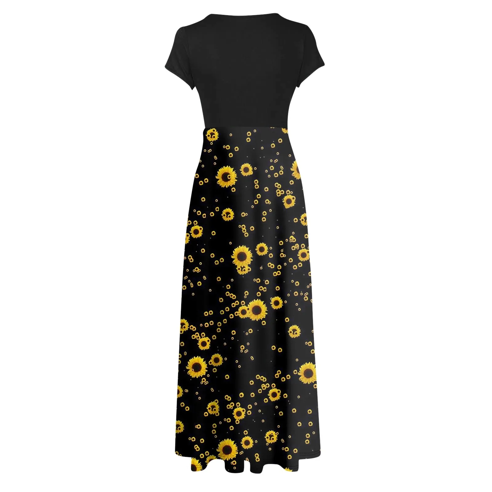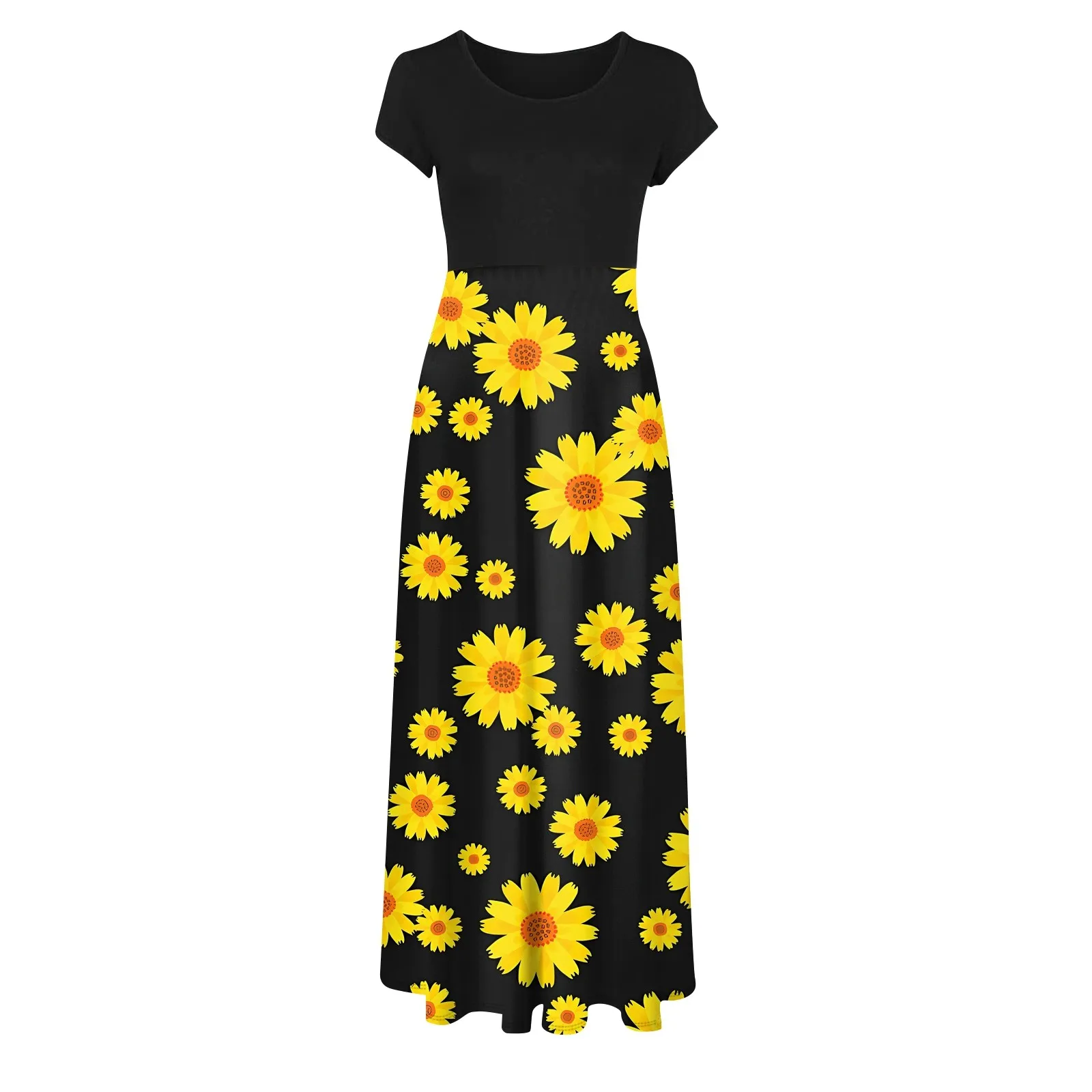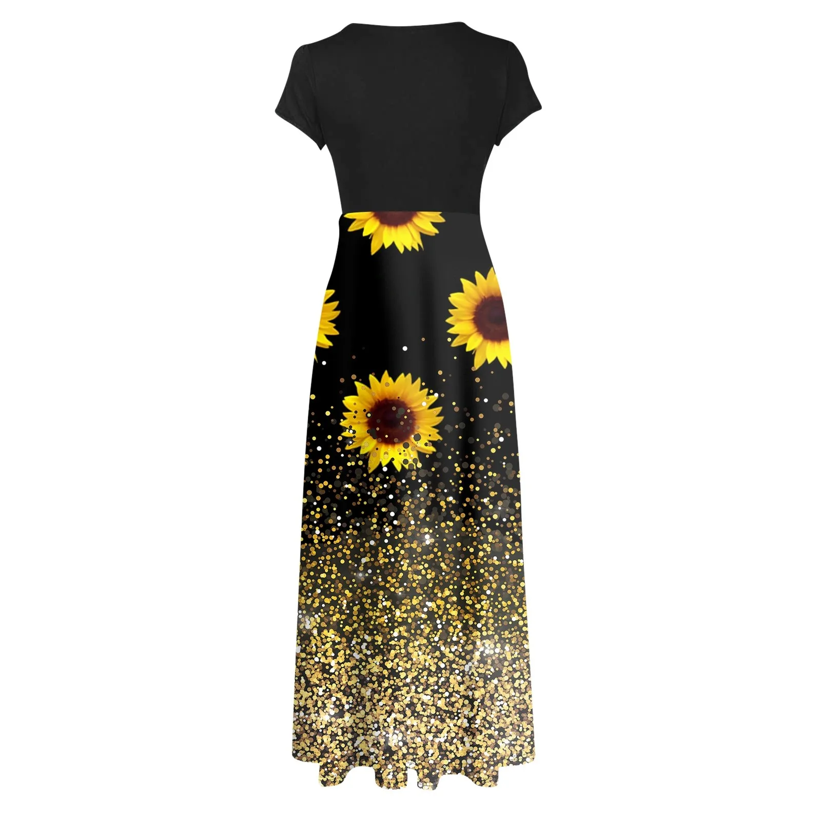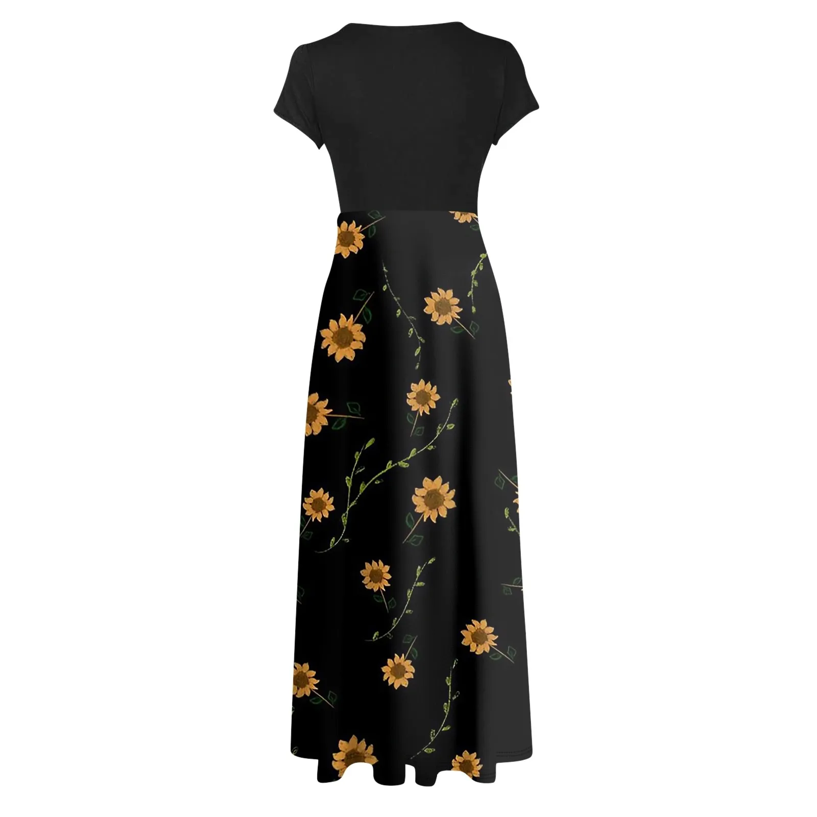 elegant dresses for women Fashion Casual long dresses Print O-Neck Short Sleeves Oversized Maxi Dress Splicing vestidos curtos