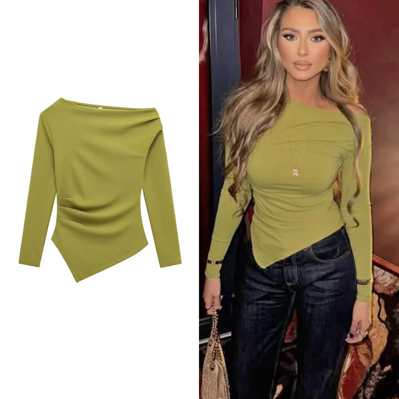 HXAO Women's Elegant Tops 2025 Spring Long Sleeve Pullovers Fashion Casual White Black Red Green Tops For Female