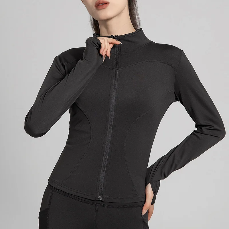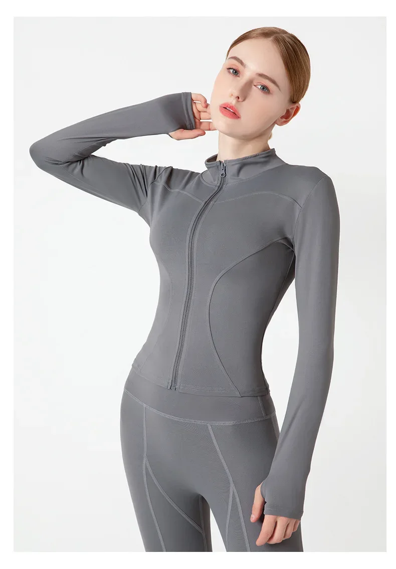 Lady Fitness Elastic Breathable Nude Fabric Long-sleeved Fitted Gym Jacket Quick Dry Sun Protection