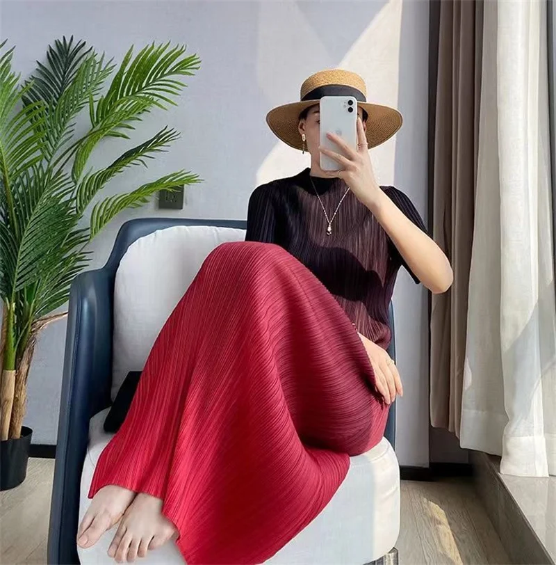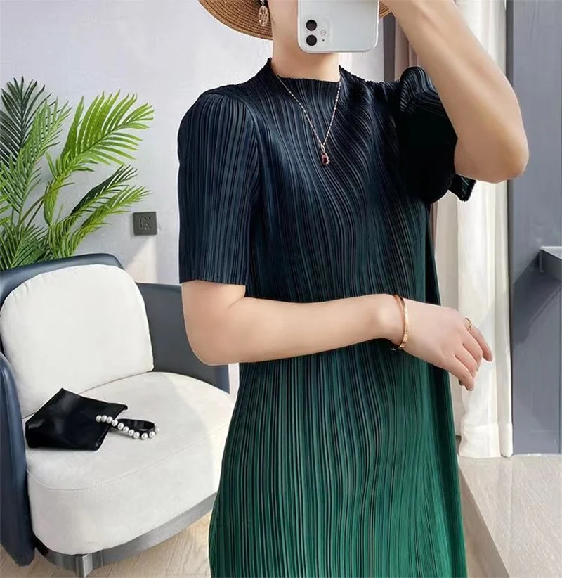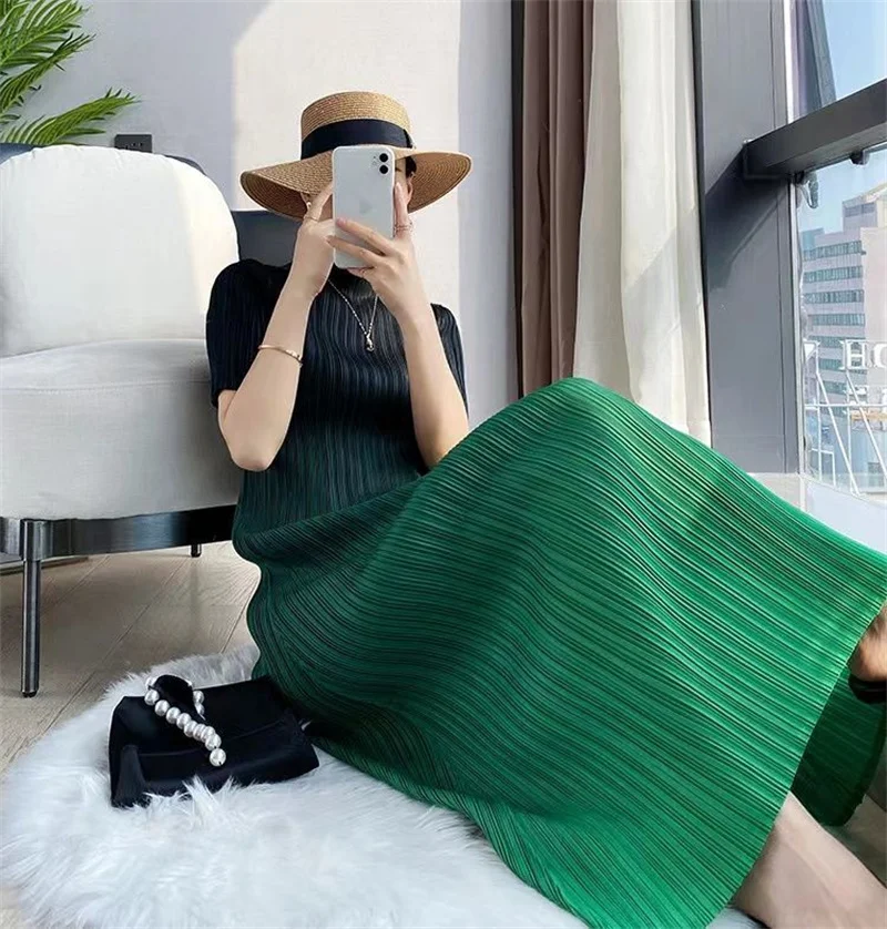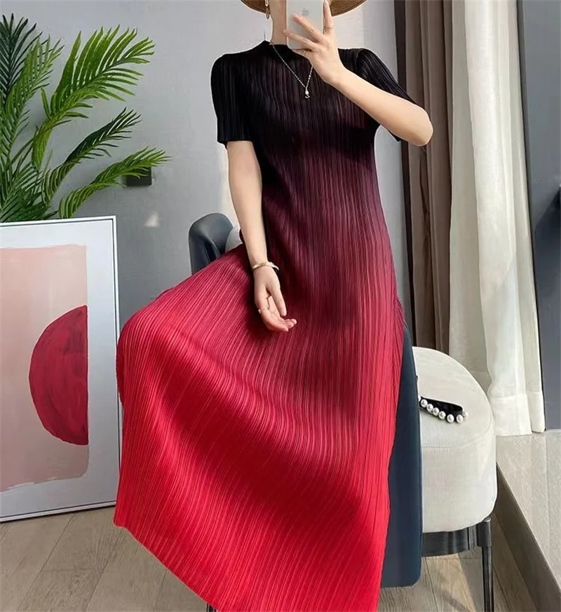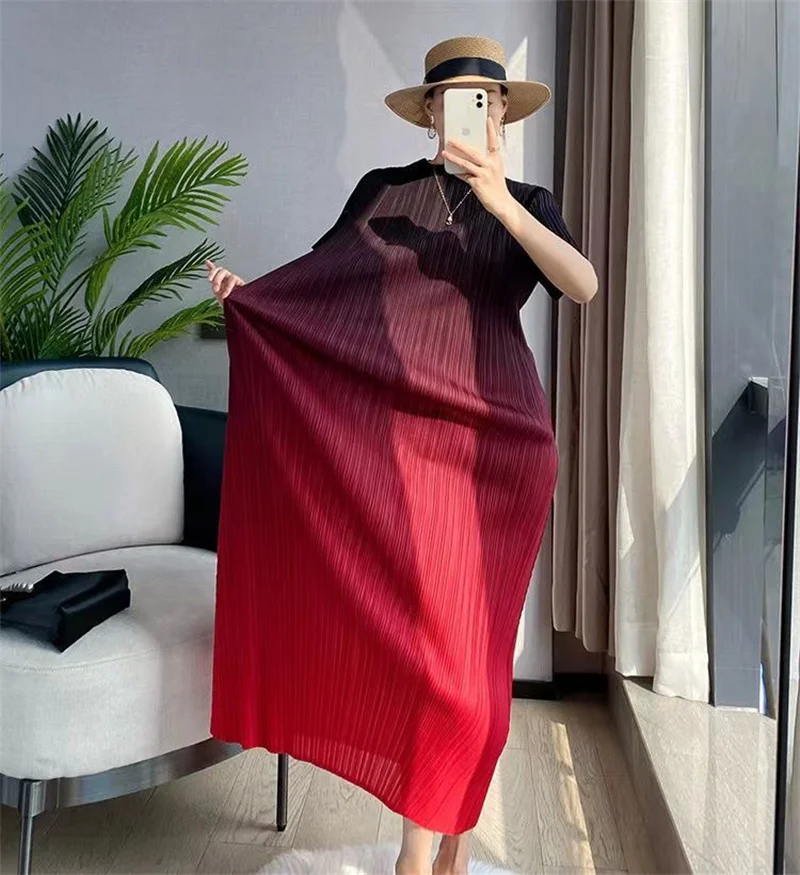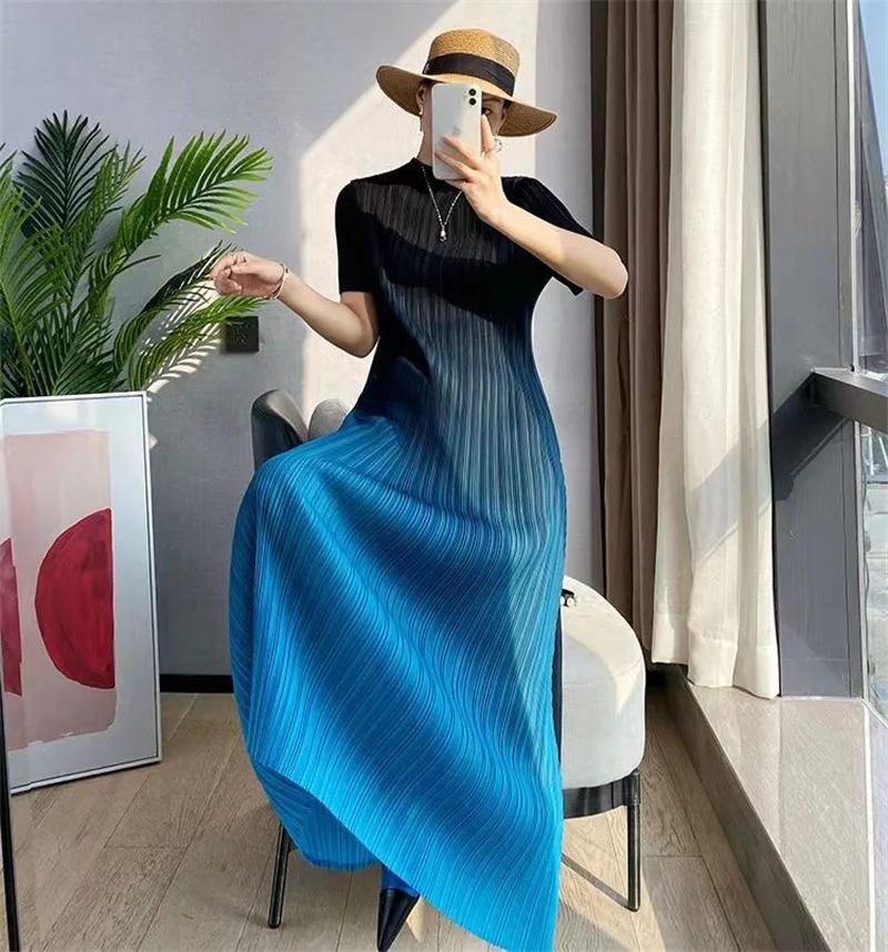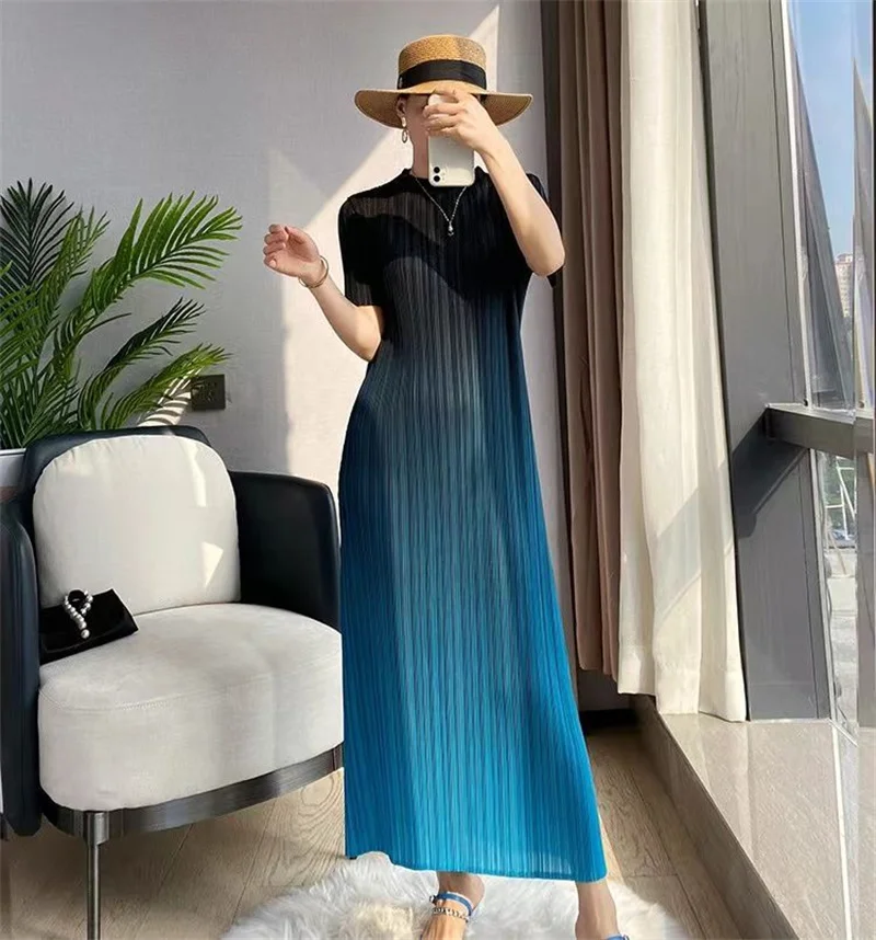 Long Dresses Elegant Party Dresses Woman Miyake Pleated Dress Female Gradient Long Loose Fashion Stitching Drape Bottoming Dress