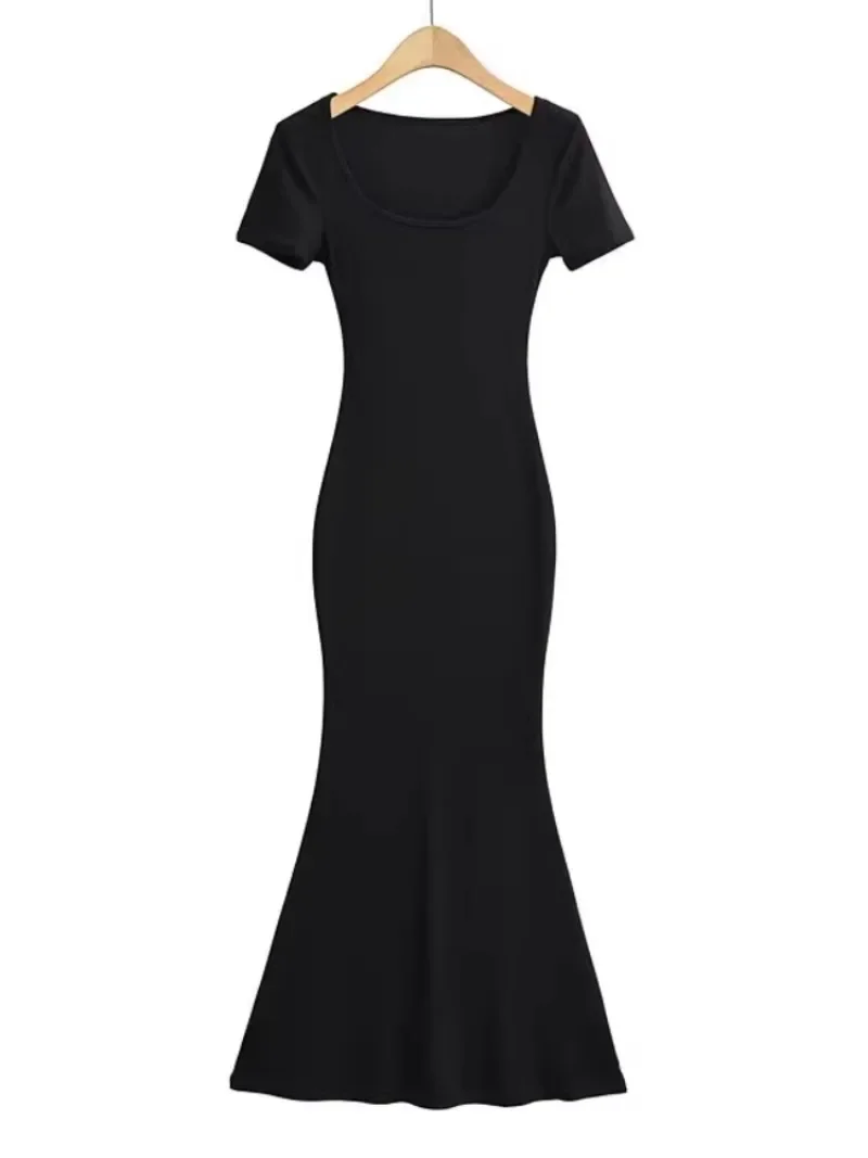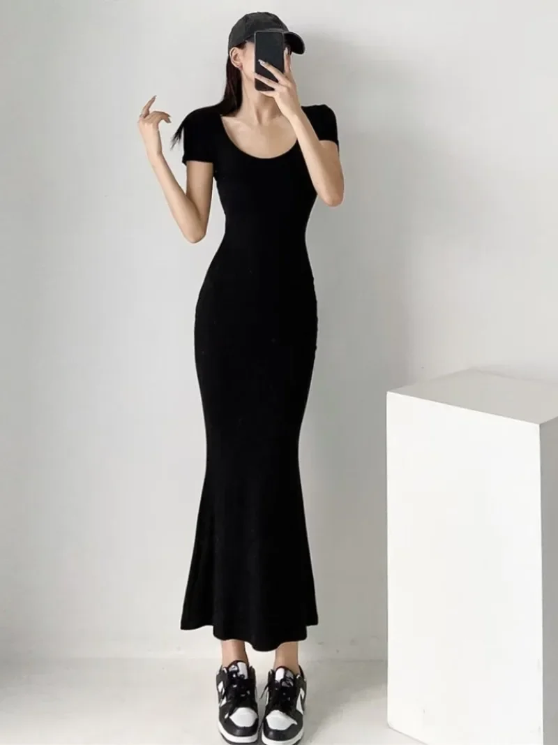 Long Dresses Women Solid Simple Elegant Partywear Gentle Trumpet Vestidos Slim French Vintage Night Club Temper Womens Daily