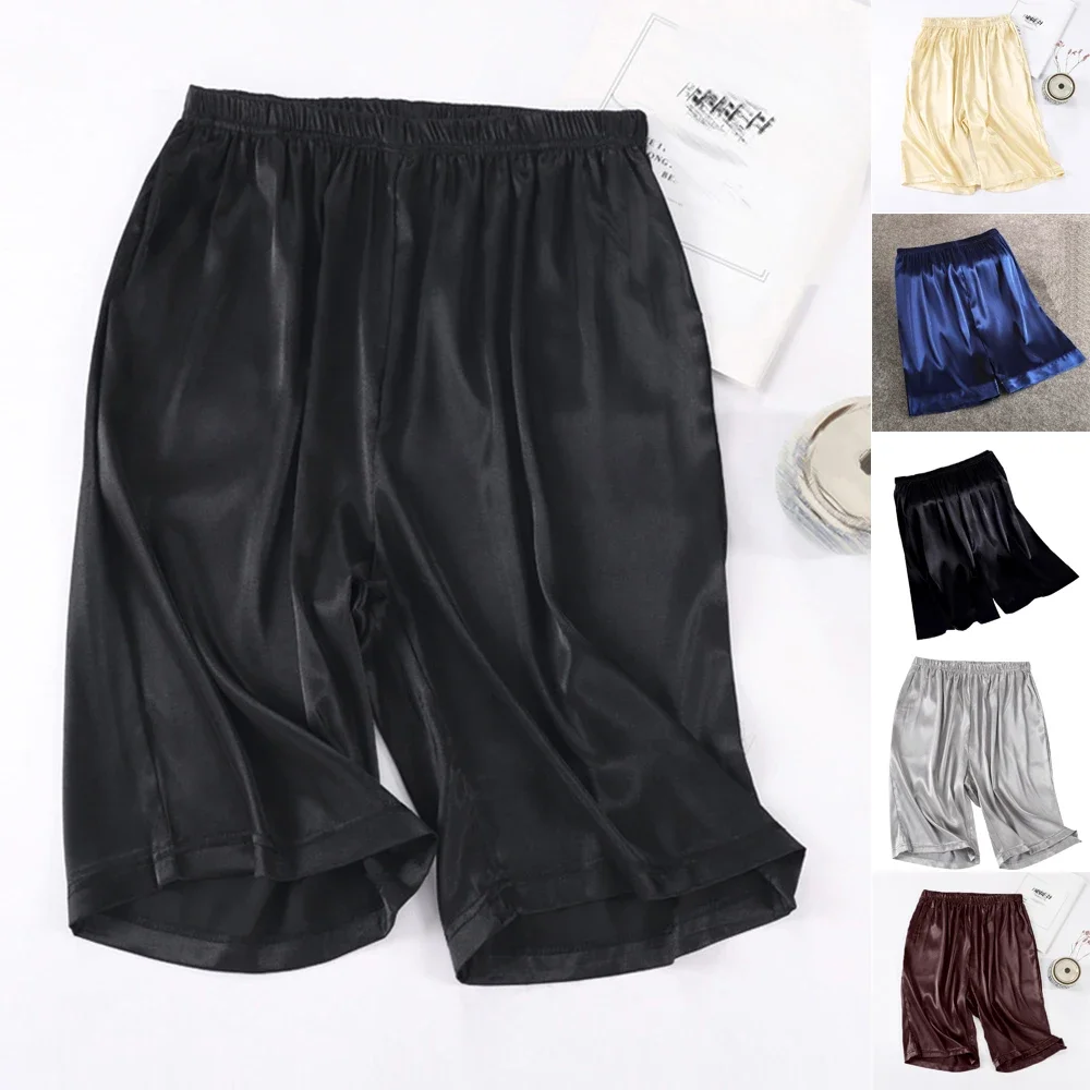 Men's Home Silk Pajamas Shorts Sleep Bottoms Nightwear Breathable Comfortable Male Soft Sleepwear