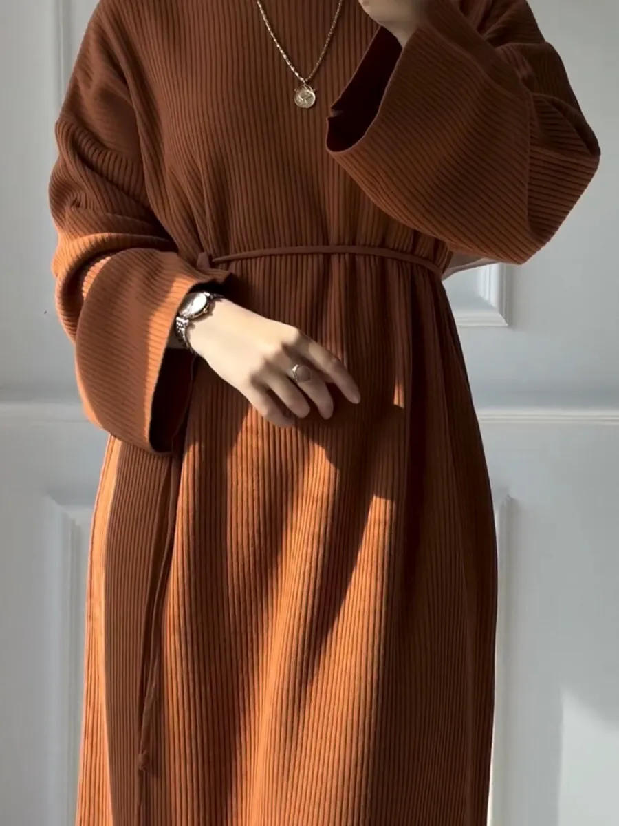 Dubai Winter Thicken Warm Knit Sweater Abayas For Women Evening Long Dress Ramadan Clothing