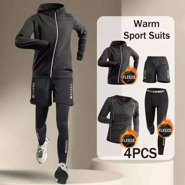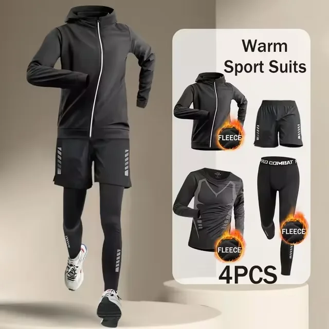 New Men's Hot Korean Sports Suit 2-4pcs Running Set Jogging Basket Underwear Tights Sports Clothing Gym Fitness Suit Clothing