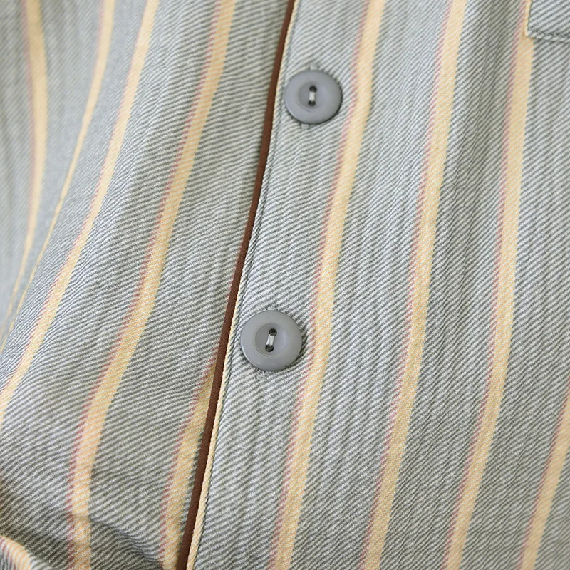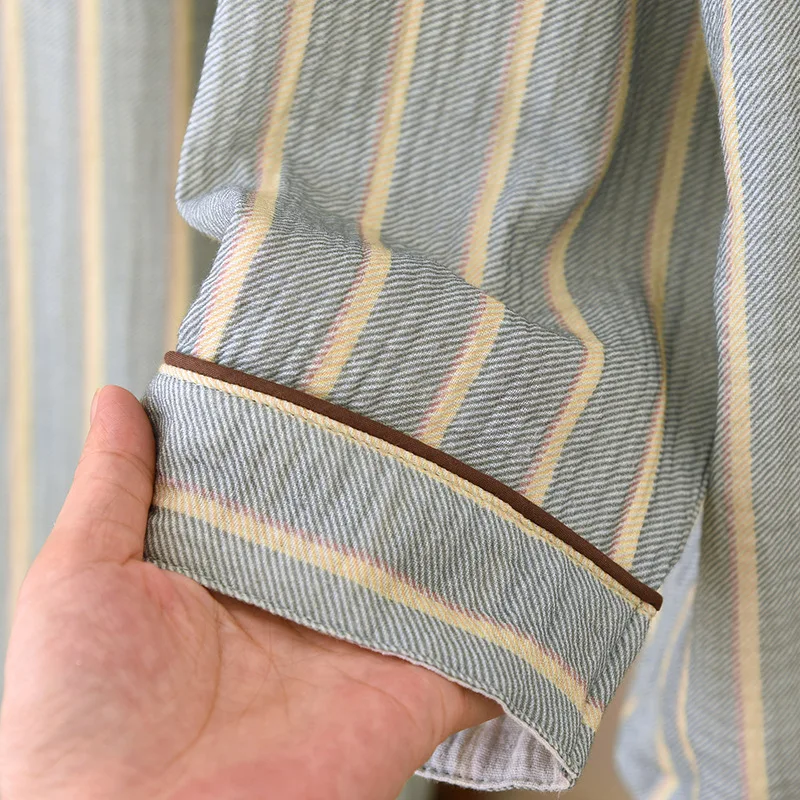 New men's sleepwear two-piece set for spring 2025 100% cotton crepe fabric vertical stripe long sleeved long pants home suit set