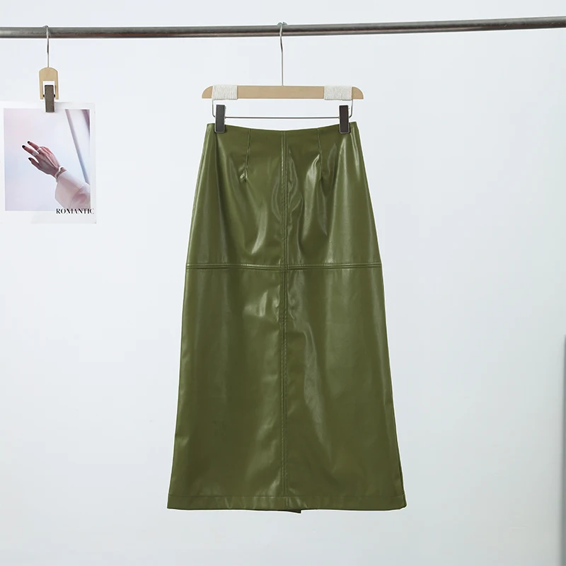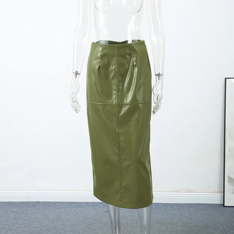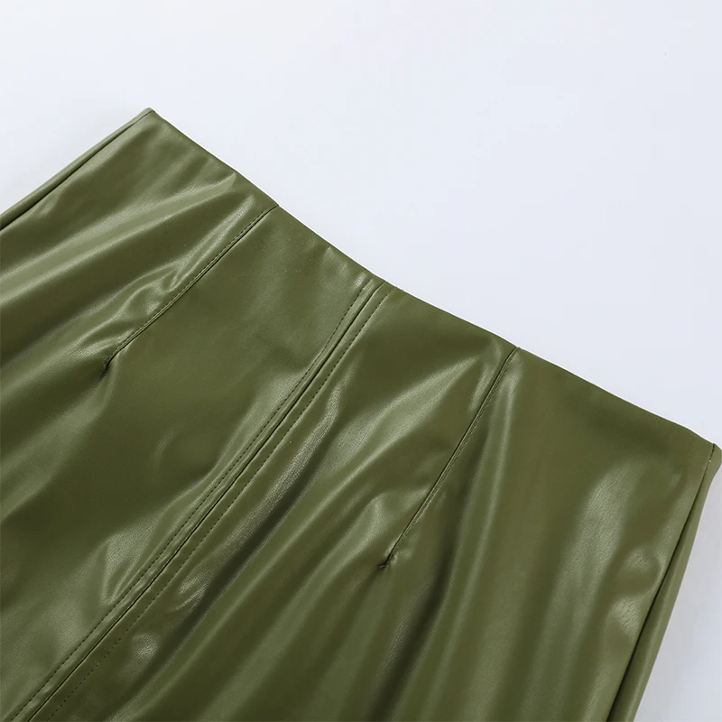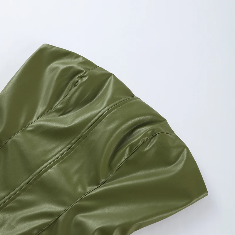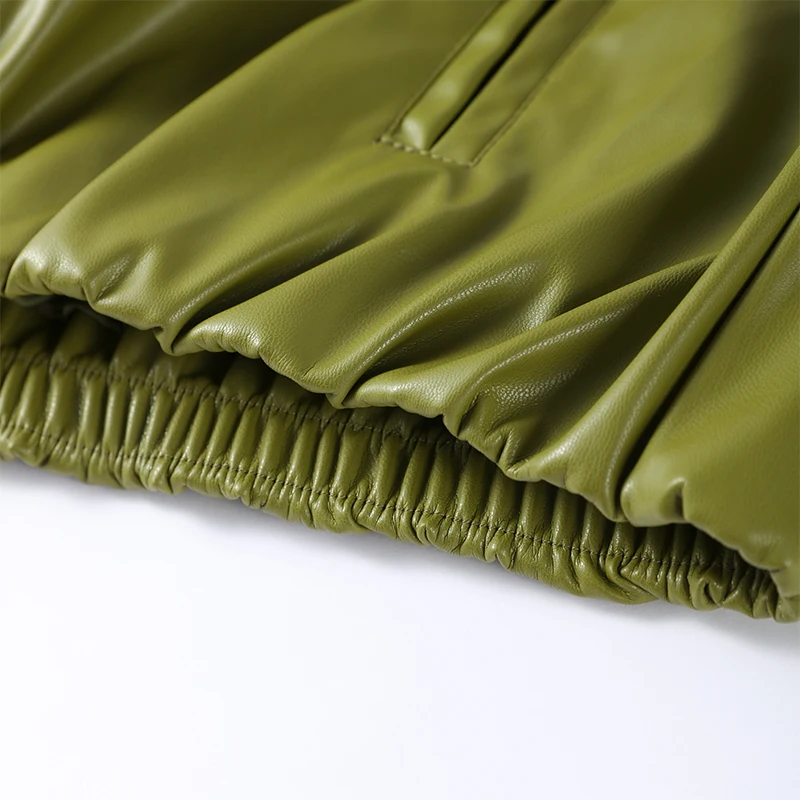 Model Number: Stylish Leather Solid Jacket Skirt Set Women