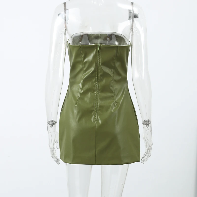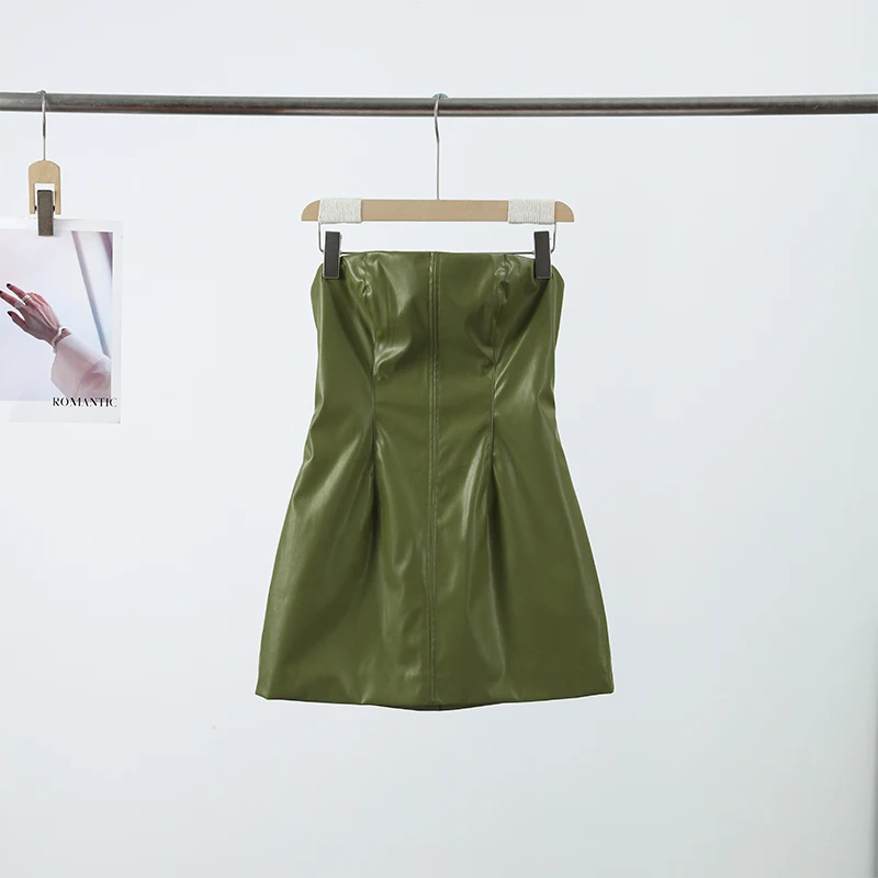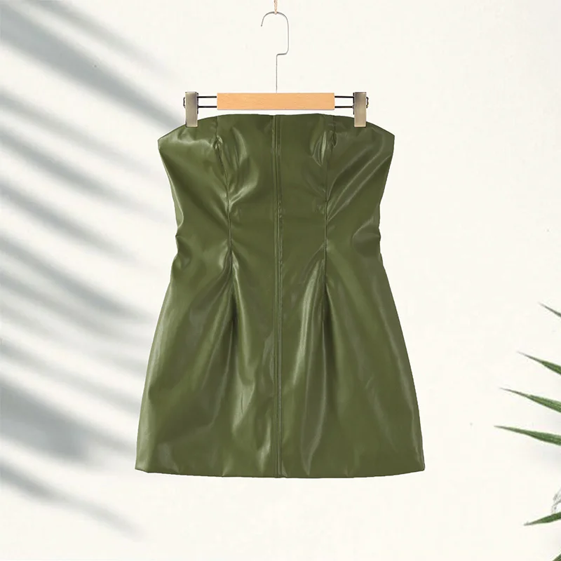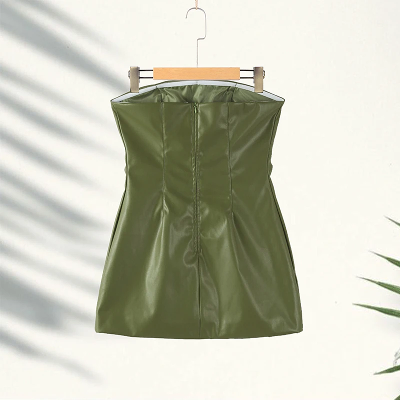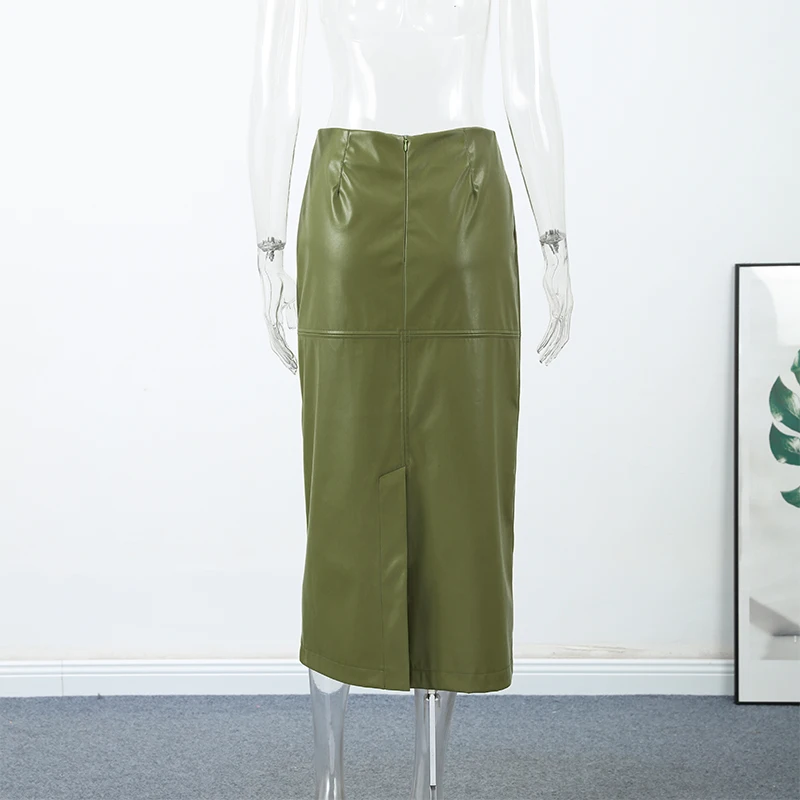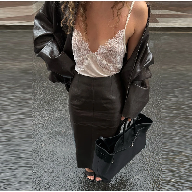 Model Number: Stylish Leather Solid Jacket Skirt Set Women