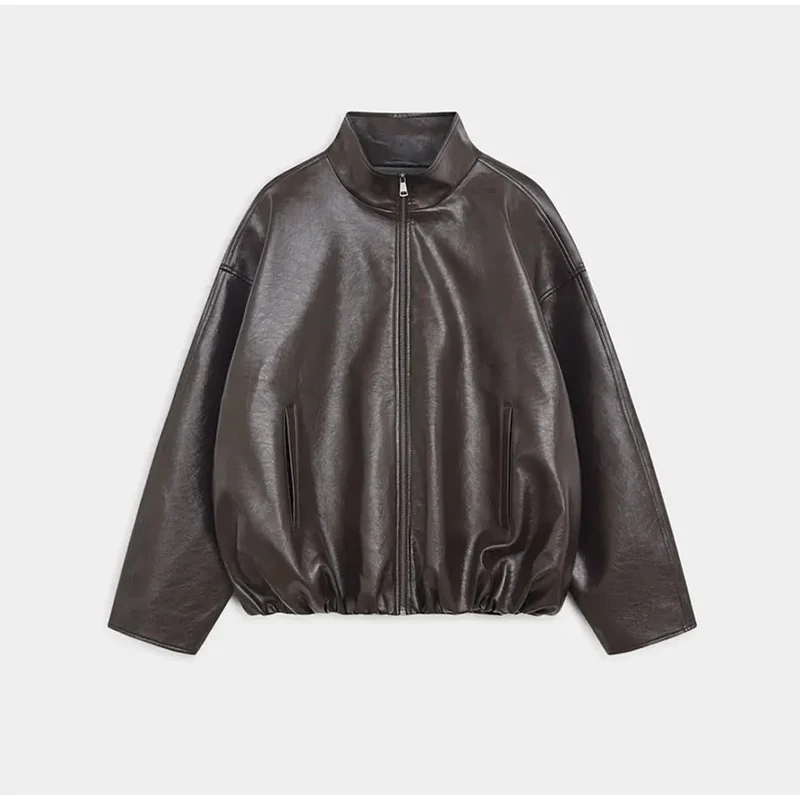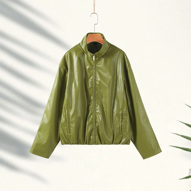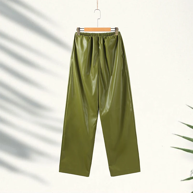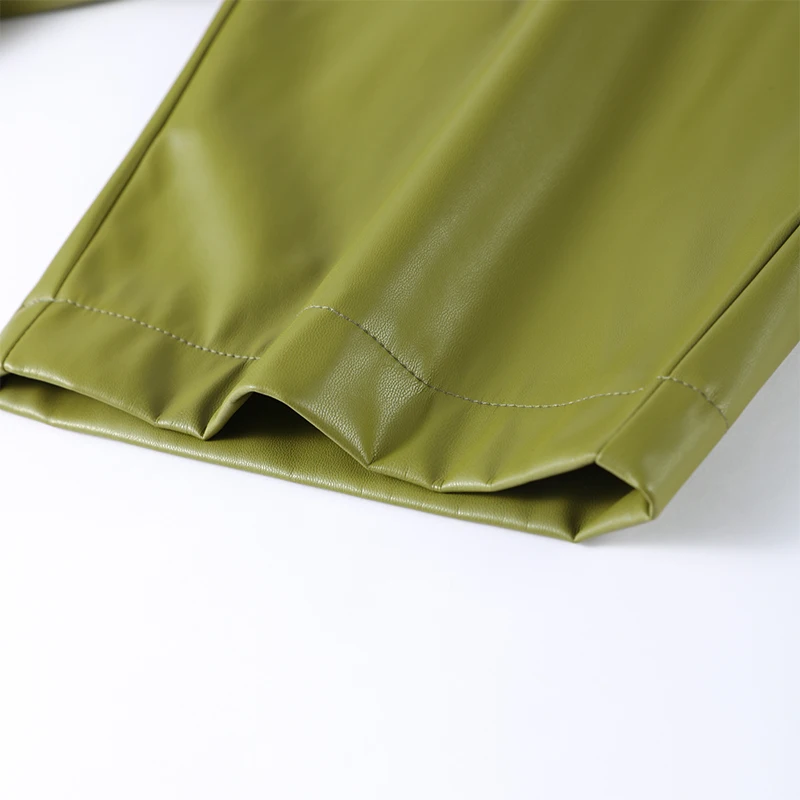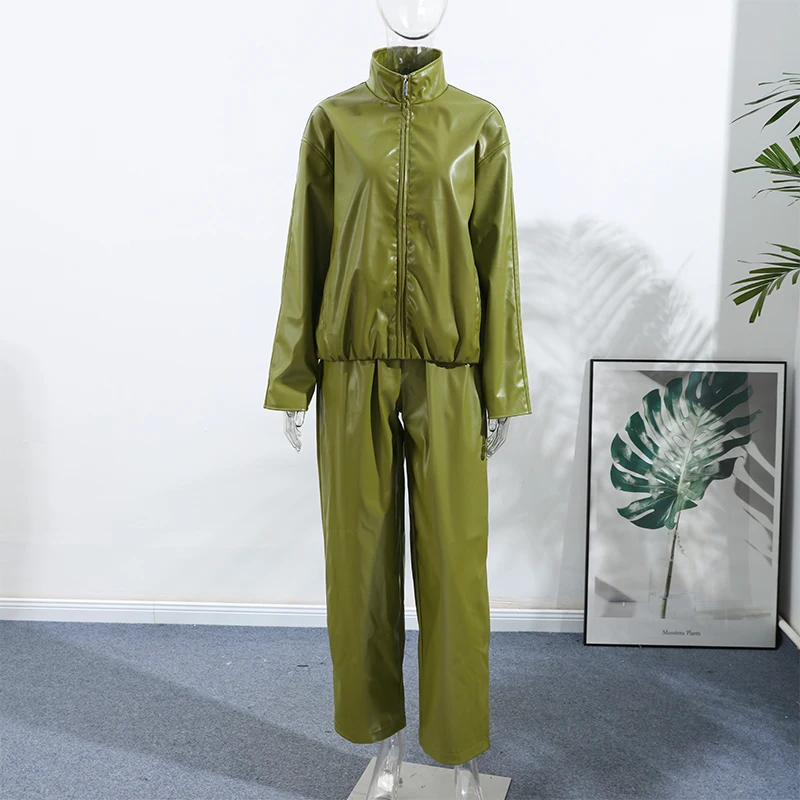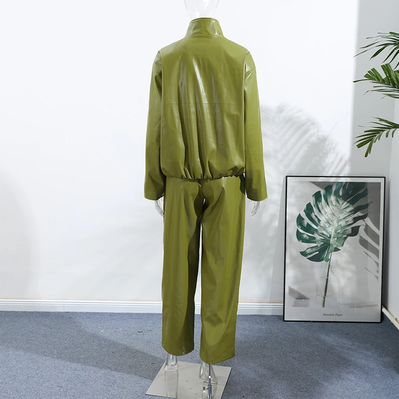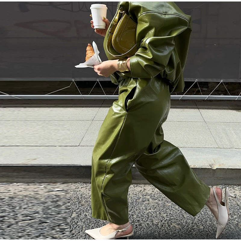 ladies Stylish Leather Solid Jacket Pants Set Women Stand Collar Zipper Coat Loose Trousers Sets Female 2025 Autumn Fashion Streetwears