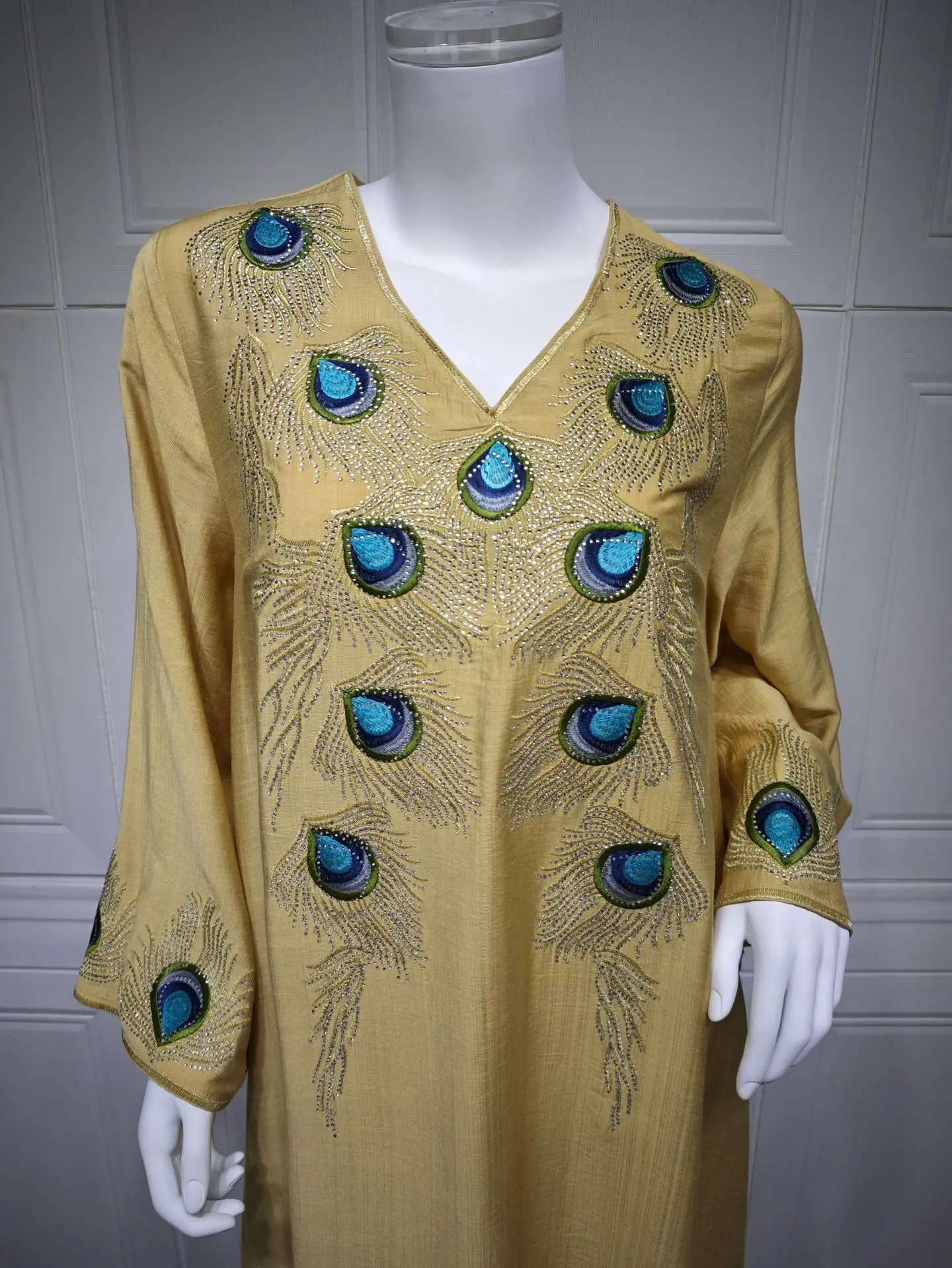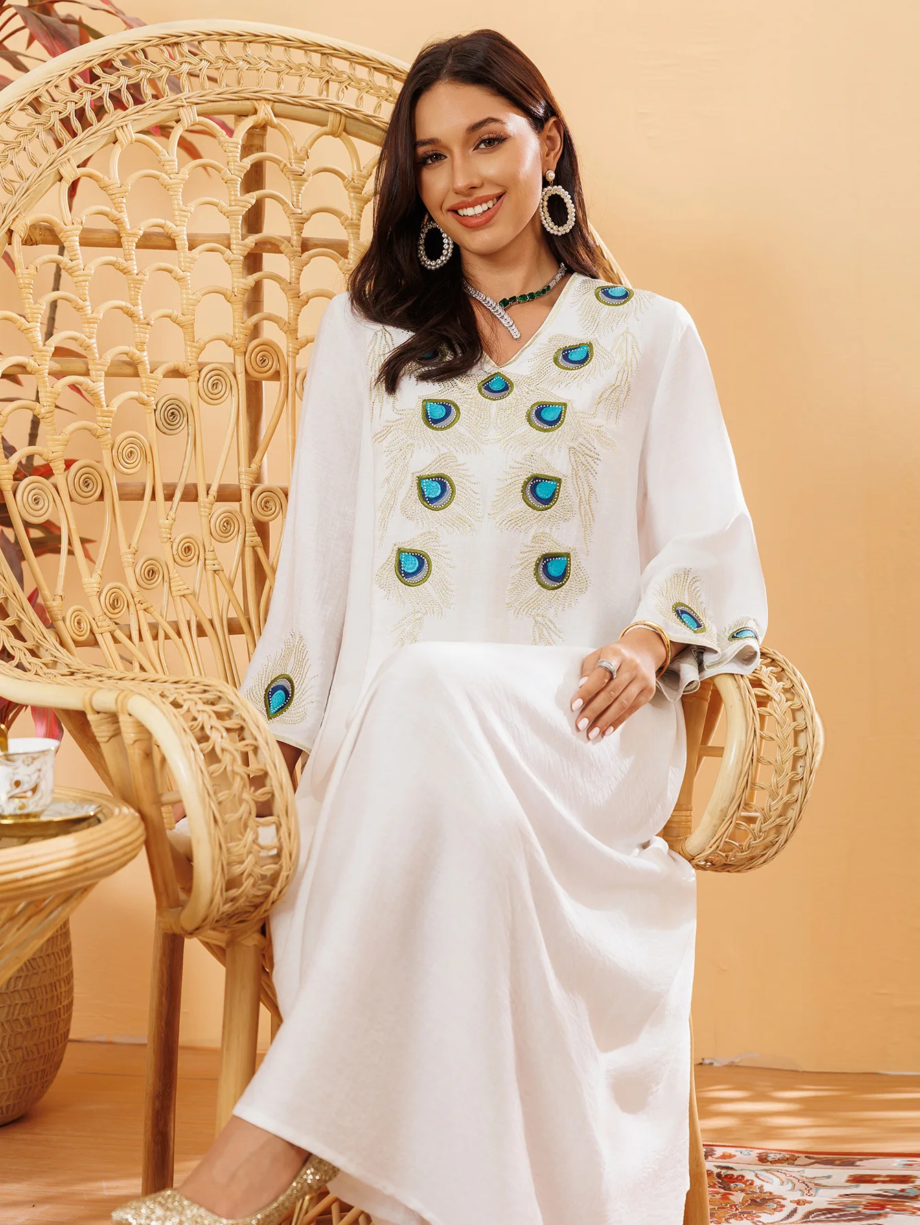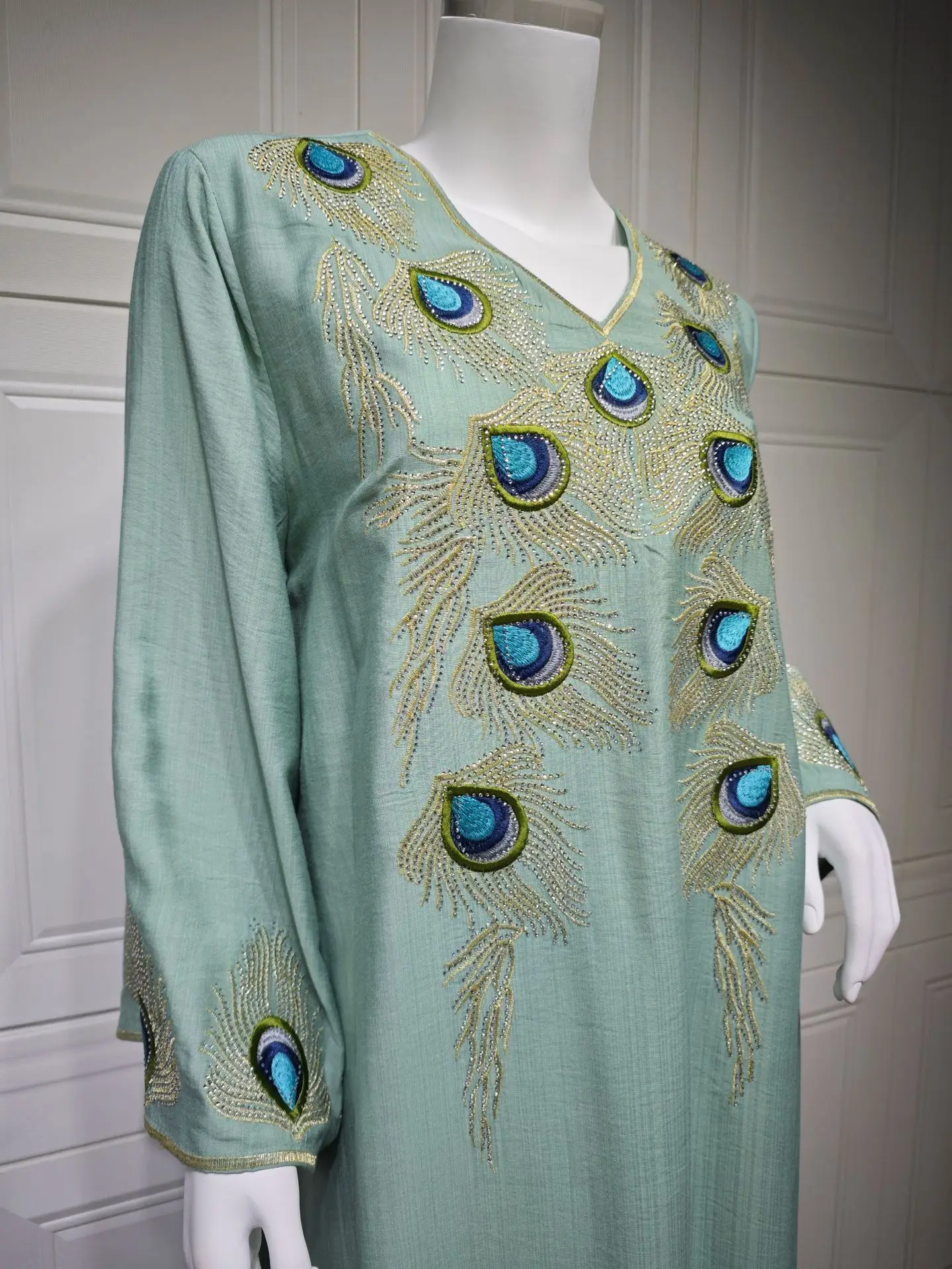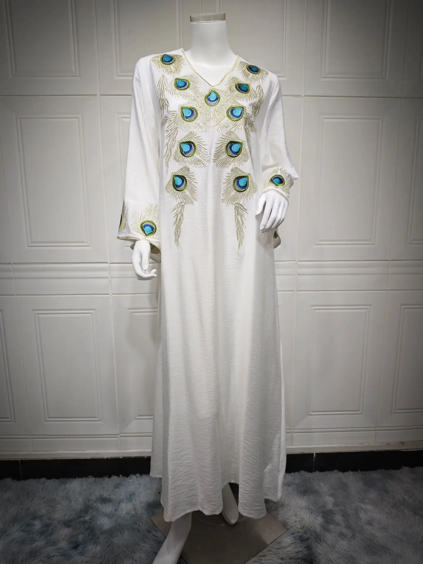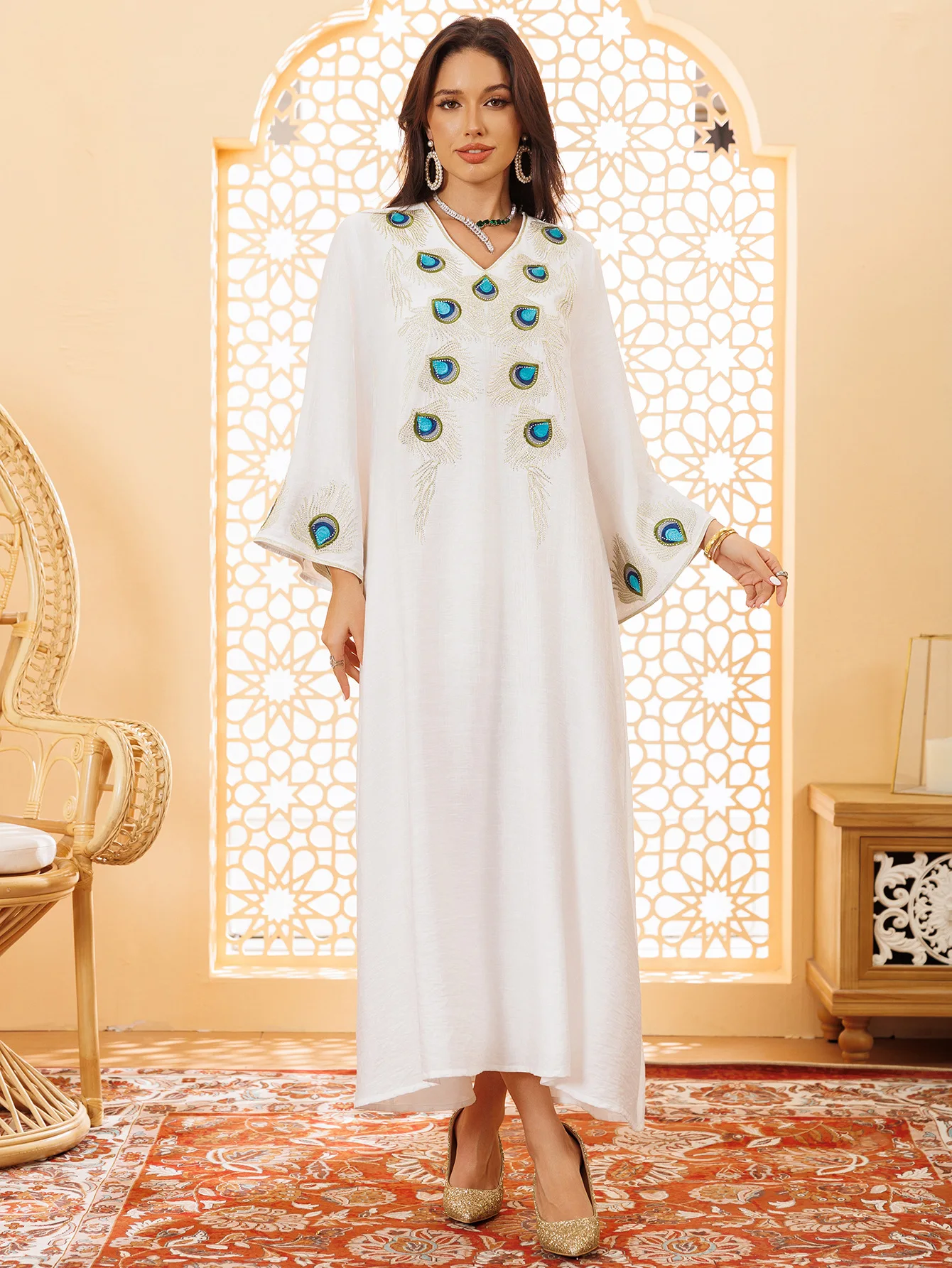 Elegant Women Evening Dress Solid V-Neck abaya Long Sleeve