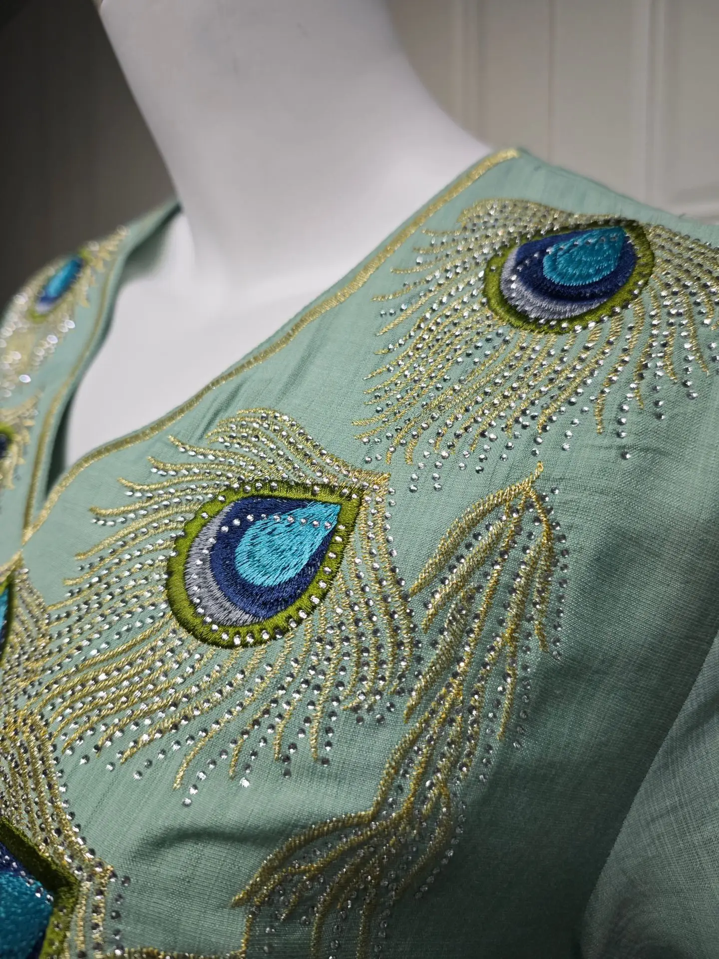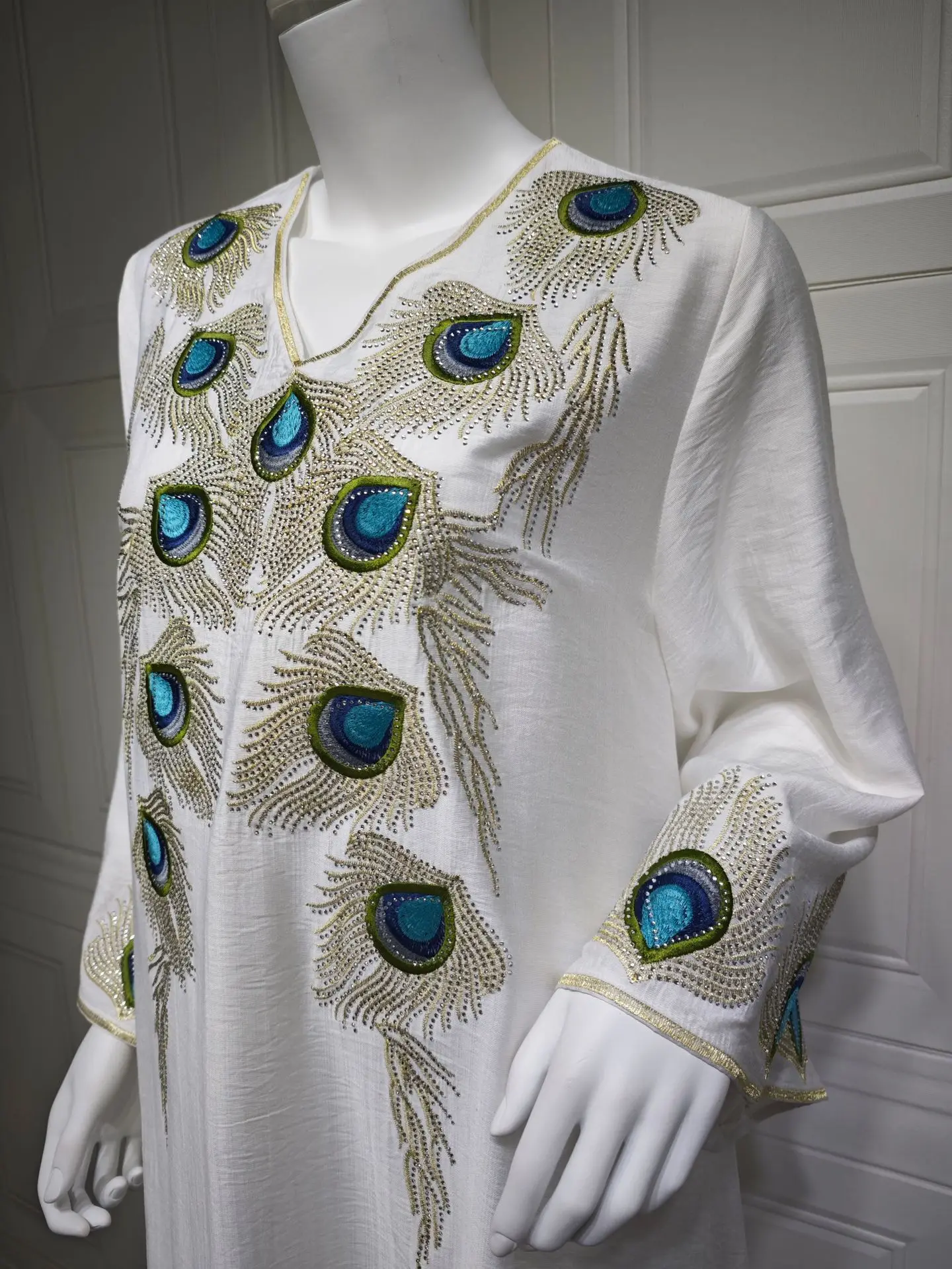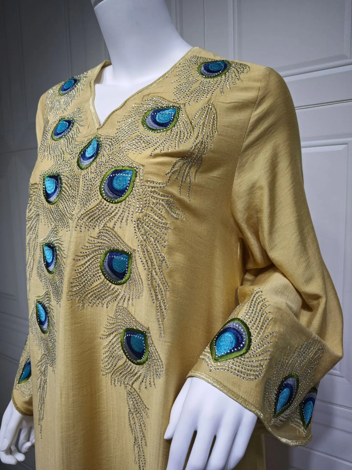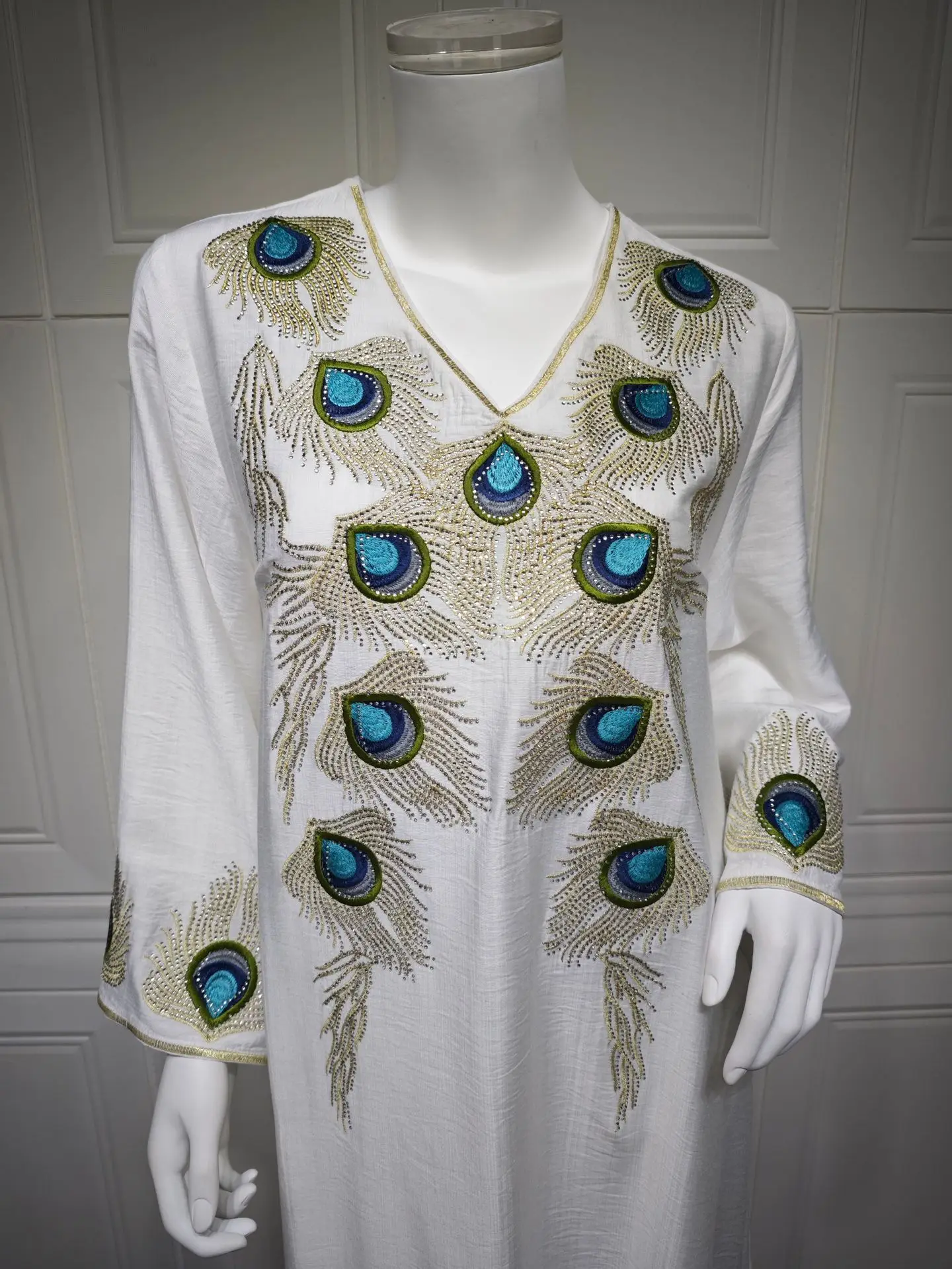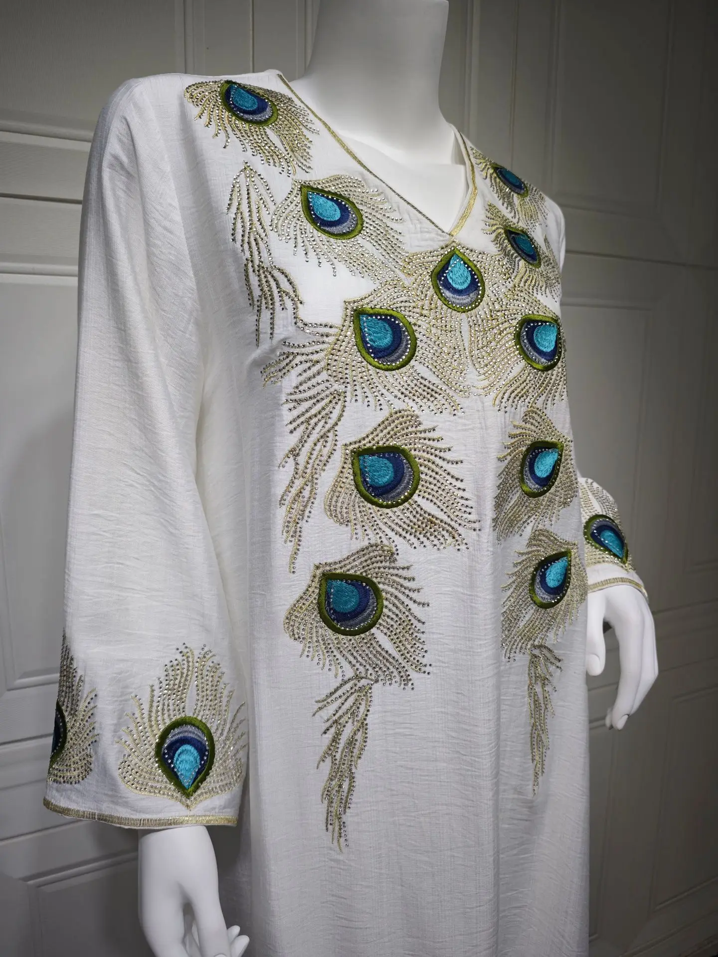 Elegant Women Evening Dress Solid V-Neck abaya Long Sleeve
