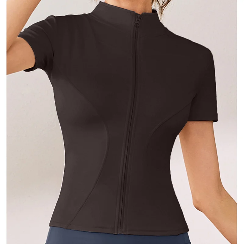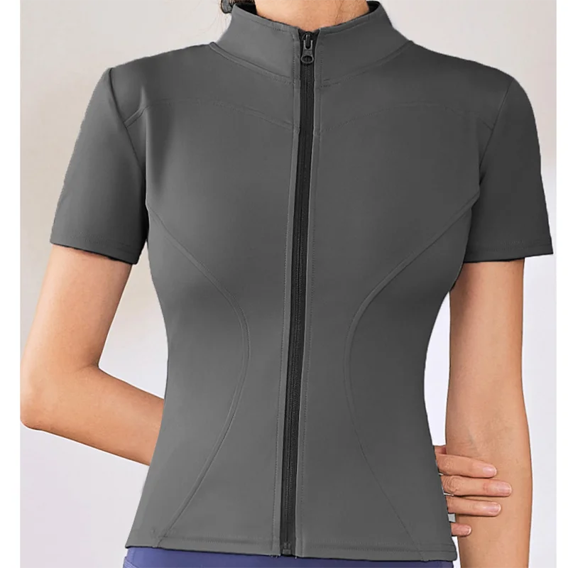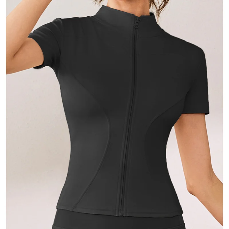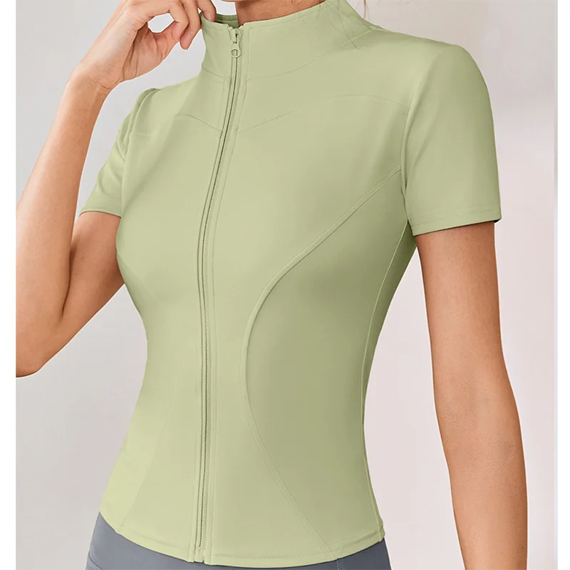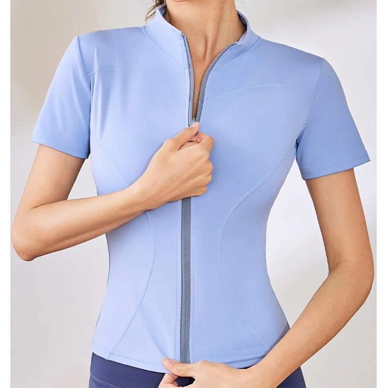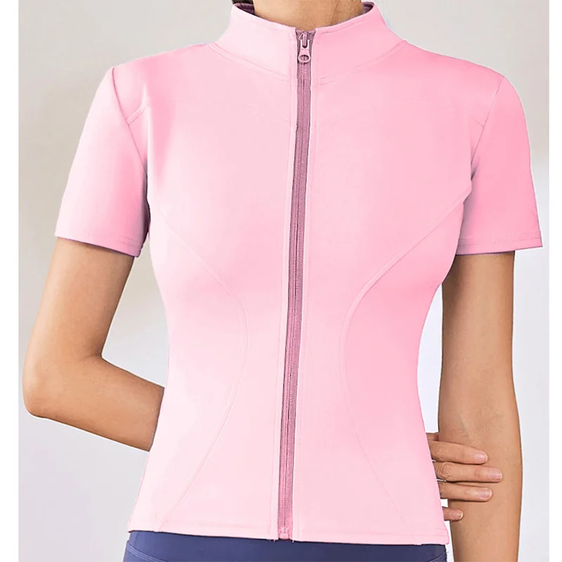 Women Sport Wear Slim Fit Quick-drying Full Zip Outdoor Fitness Running Tights Women's Short Sleeves Top