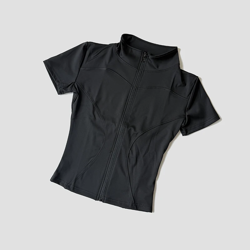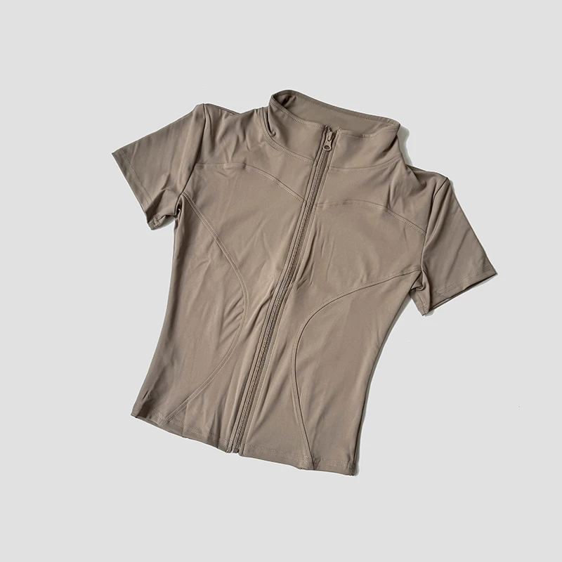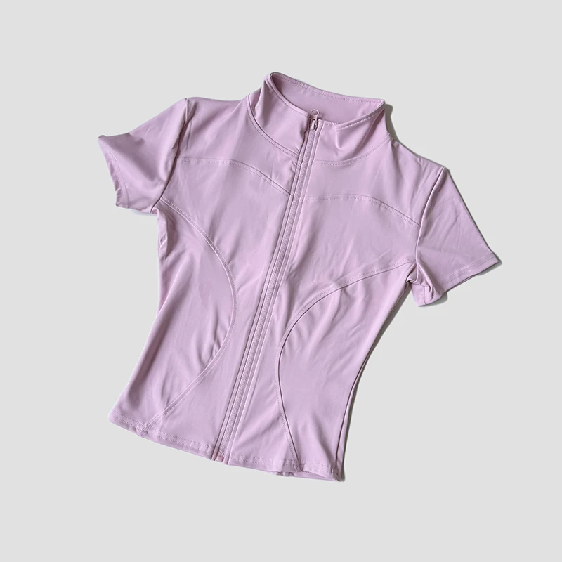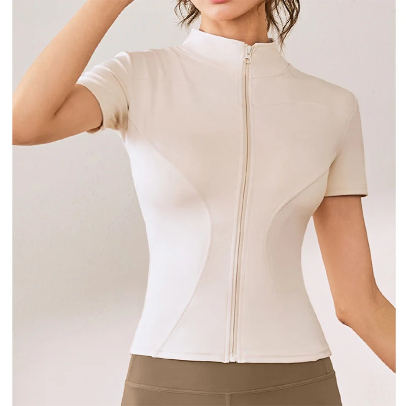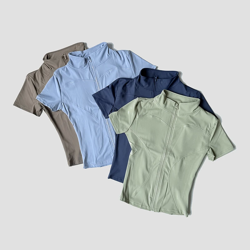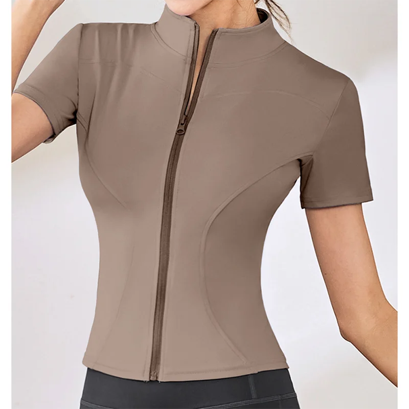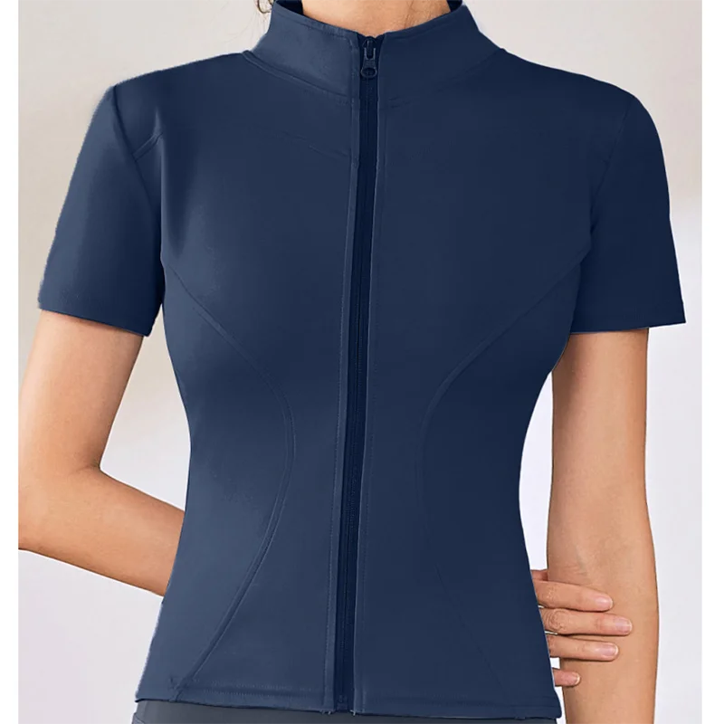 Women Sport Wear Slim Fit Quick-drying Full Zip Outdoor Fitness Running Tights Women's Short Sleeves Top