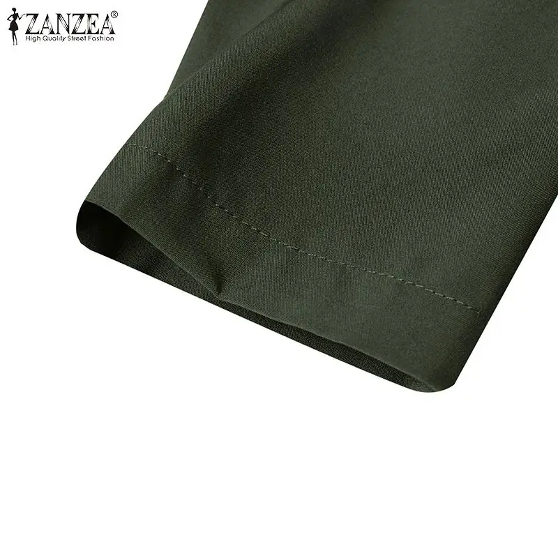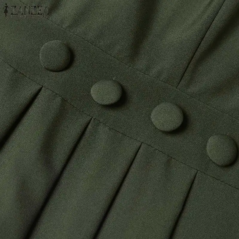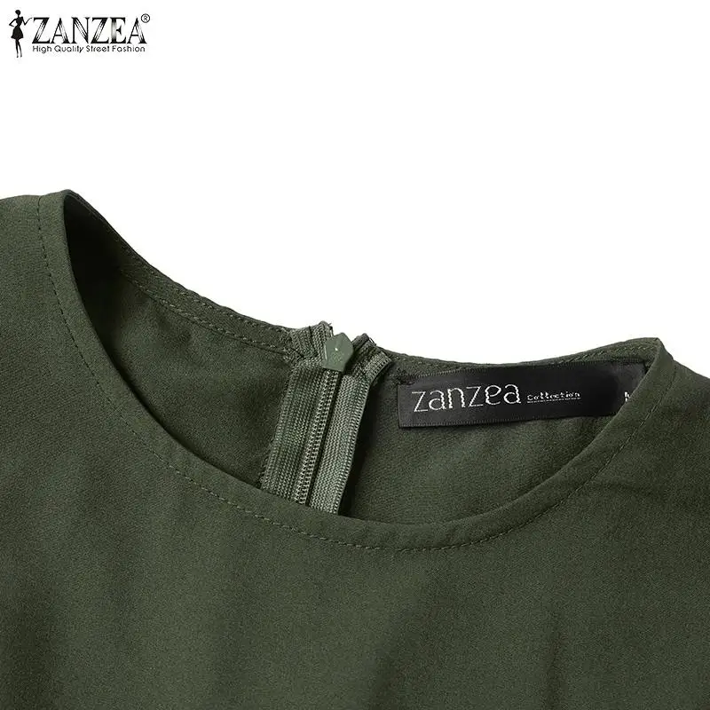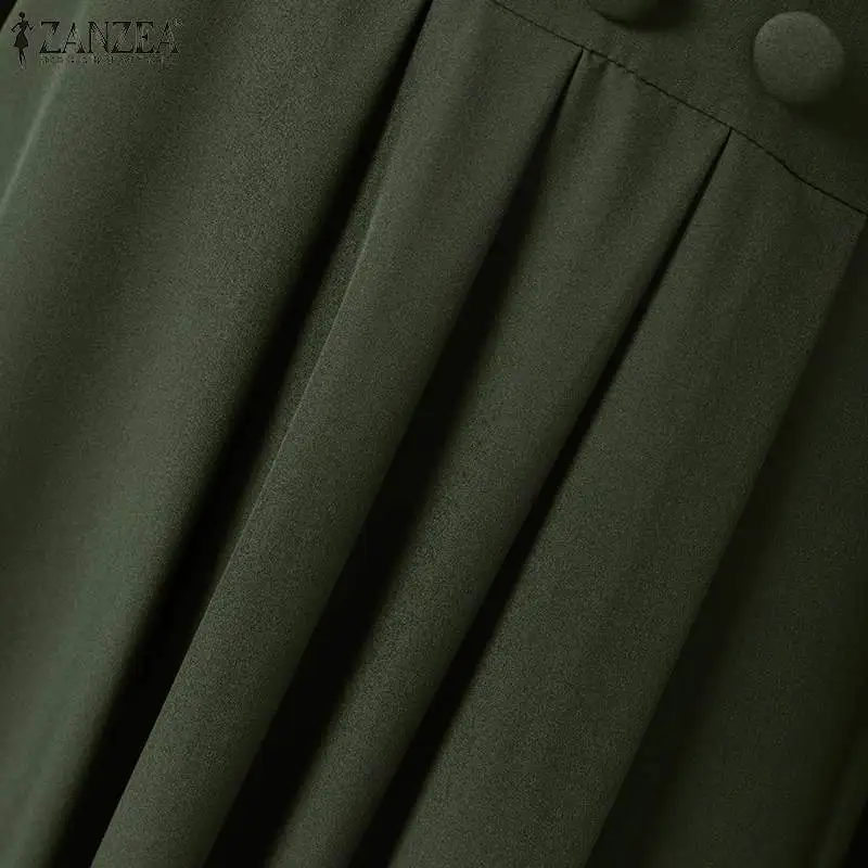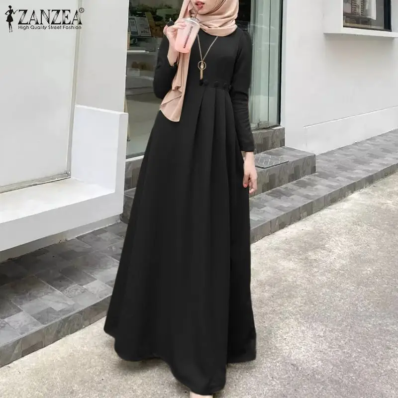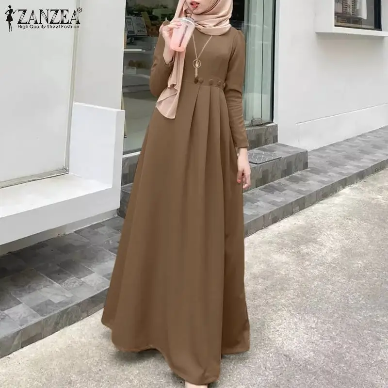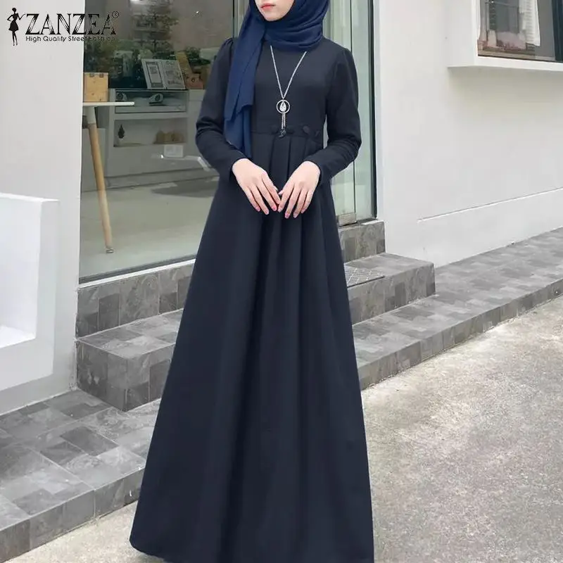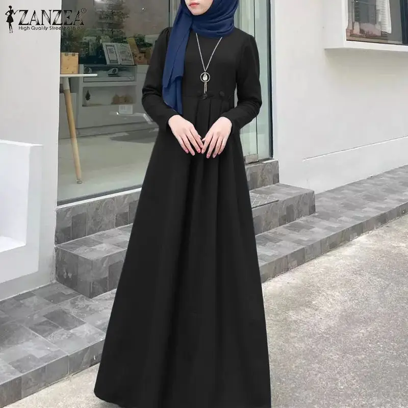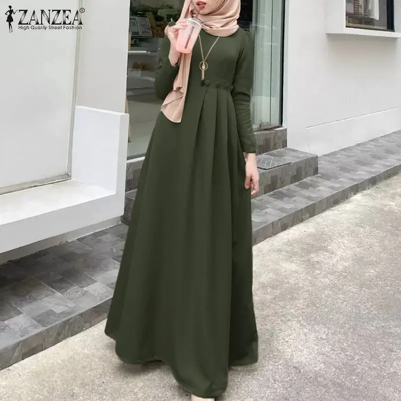 ZANZEA Women's Long Dress Spring Full Sleeve O-Neck Solid Sundress Casual Loose Elegant Robe